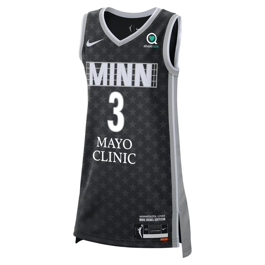 The Powers 3 Minnesota Lynx Rebel Jersey in black is a lightweight, breathable sports jersey perfect for fans, athletes, and casual wear. Crafted from 100% polyester, it offers superior comfort, durability, and moisture-wicking performance to keep you cool during workouts, training sessions, games, or everyday outings. The classic fit and clean design feature bold team-inspired graphics, making it ideal for showing Lynx spirit without official affiliation. Unisex sizing available in S, M, L, XL, 2XL, 3XL suits adults seeking versatile athletic apparel. Pair it with shorts for practice or jeans for fan gear.