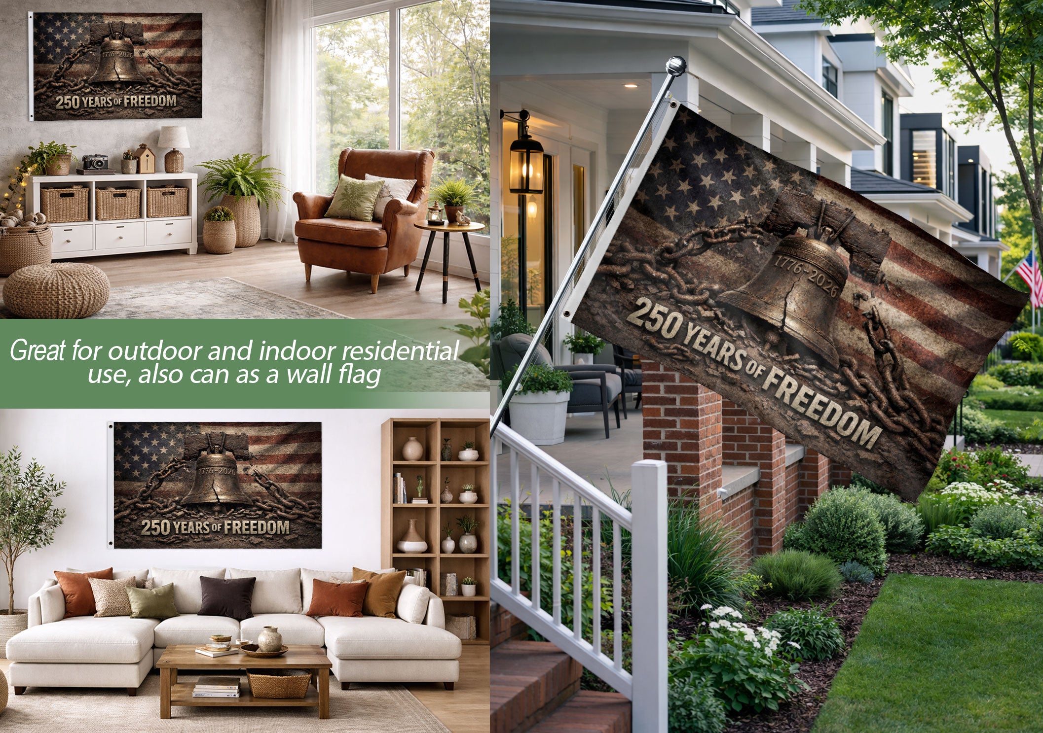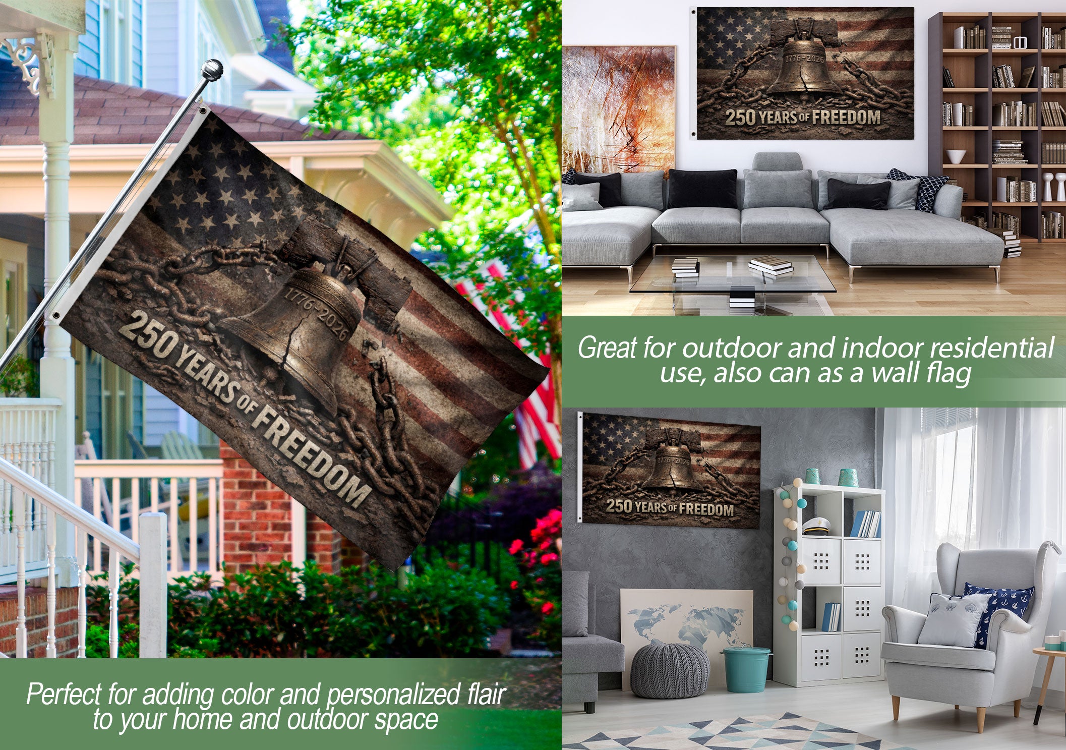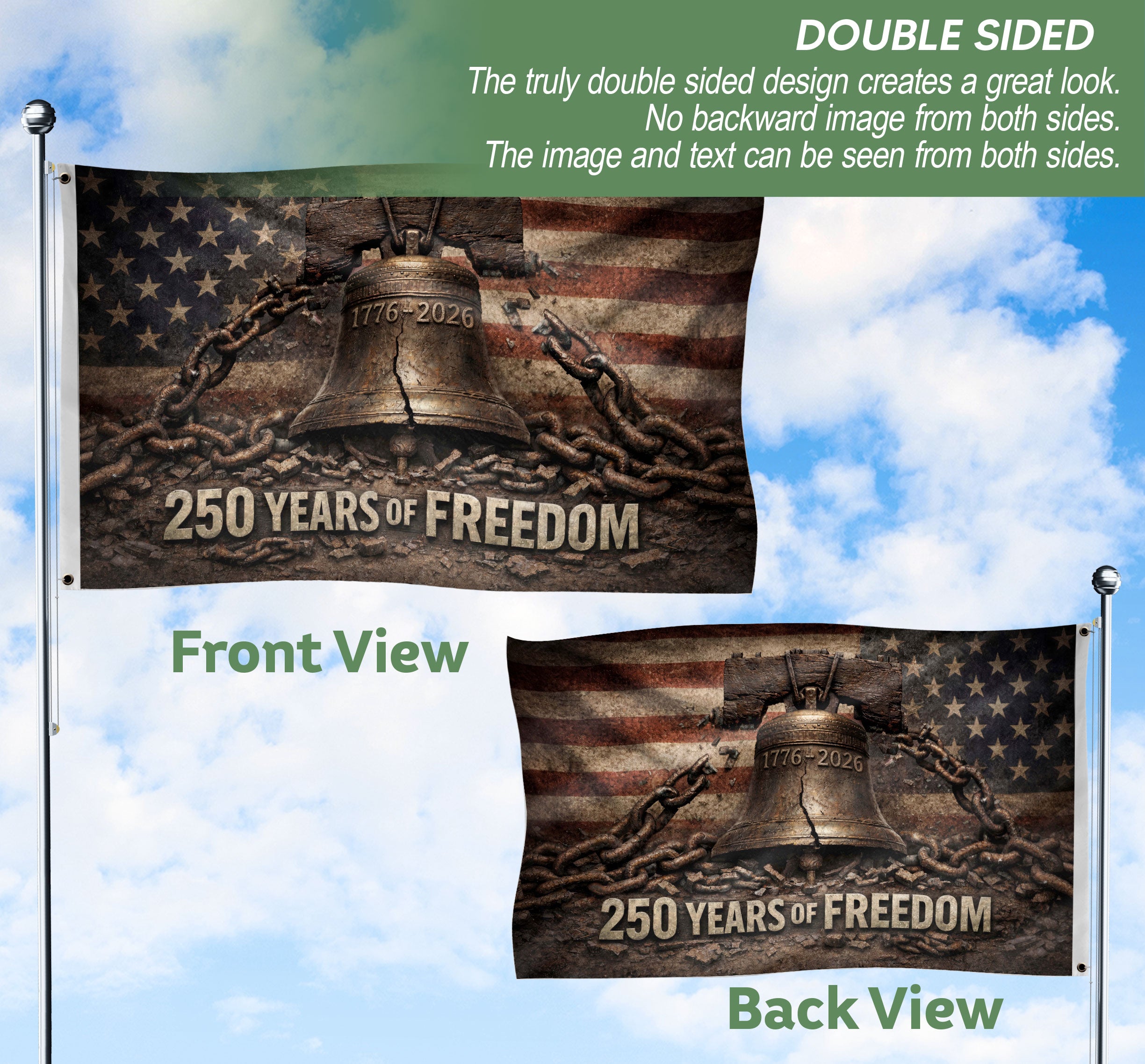 Celebrate 250 years of American independence with the Proclaim Liberty Throughout The Land 250 Years Flag 1776–2026. This striking patriotic banner features the iconic Liberty Bell and its historic inscription from Leviticus 25:10, ‘Proclaim LIBERTY Throughout all the Land unto all the Inhabitants Thereof.’ Perfect for displaying during the 250th anniversary of the United States in 2026, Fourth of July events, historical commemorations, parades, or as a proud symbol of freedom in your home, office, or outdoor space. Crafted with high-quality, durable fabric to withstand the elements, this banner captures the enduring spirit of liberty that inspired the nation’s founding. Hang it vertically or horizontally to honor the journey from 1776 to 2026 and inspire patriotism in all who see it.