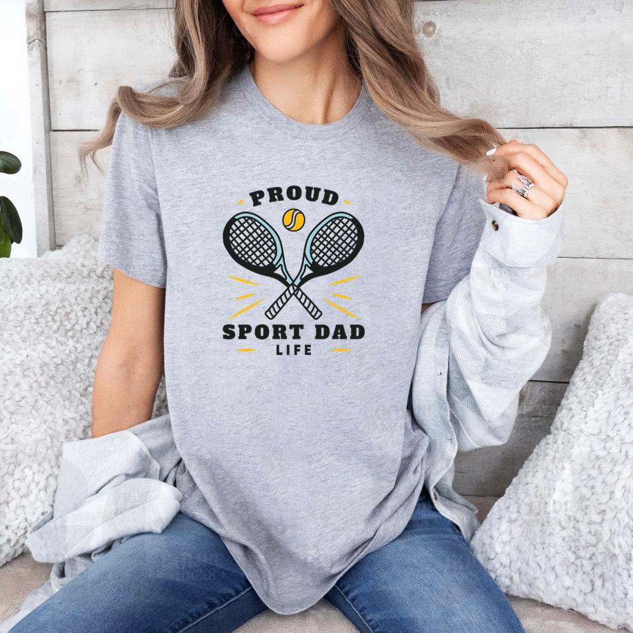 Comfy, casual, and always in style, this Proud Sport Dad Life Tennis Design T-Shirt T-shirt is perfect for daily wear or easy gifting.