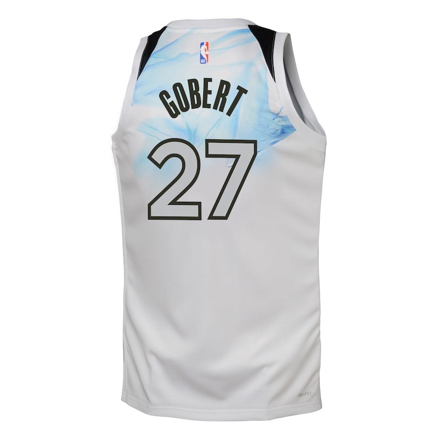 The Rudy Gobert 27 Minnesota Timberwolves 2024/25 Swingman Player Youth Jersey in City Edition White is a lightweight, breathable sports jersey perfect for young fans. Crafted from 100% polyester, it offers superior comfort, moisture-wicking performance, and durability for game days, training, or casual wear. The classic fit and iconic design feature the player’s number 27, team graphics, and City Edition styling, making it ideal for showing Timberwolves spirit. Available in youth sizes S to 3XL, this new unisex jersey pairs easily with shorts, jeans, or athletic gear. Designed for everyday use or active play, it keeps kids cool and dry while celebrating Rudy Gobert and the Minnesota Timberwolves.