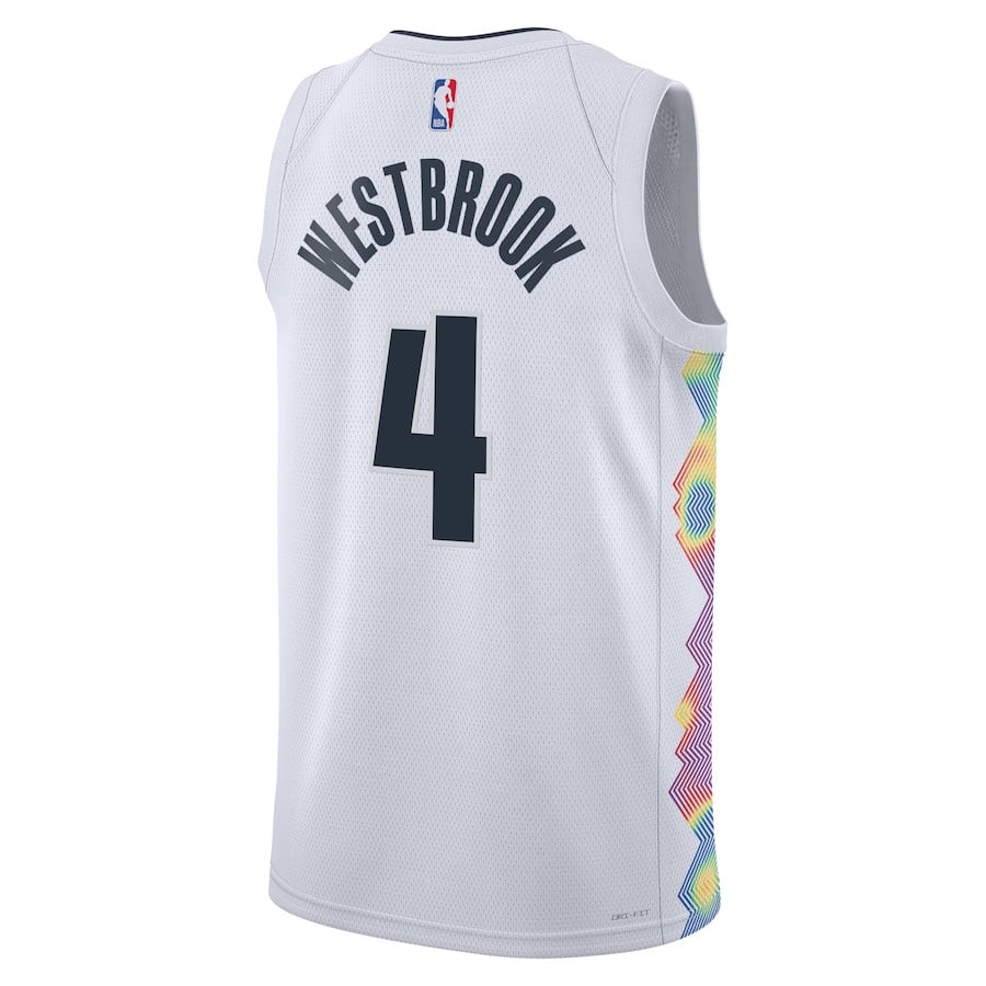 Experience the ultimate in fan style with this Russell Westbrook Denver Nuggets Unisex 2024/25 Swingman Player Jersey in City Edition White. Crafted from 100% polyester, this lightweight and breathable jersey ensures maximum comfort whether you’re cheering at the game, training hard, or wearing it casually. The classic fit offers a versatile silhouette that pairs effortlessly with jeans, shorts, or athletic wear. Designed for adults in sizes S to 3XL, it’s perfect for everyday use or showing your Nuggets pride. Multicolor accents highlight the iconic City Edition design, making it a must-have for basketball enthusiasts. Durable construction withstands repeated washes while maintaining its sharp look. Ideal for game days, workouts, or streetwear outfits.