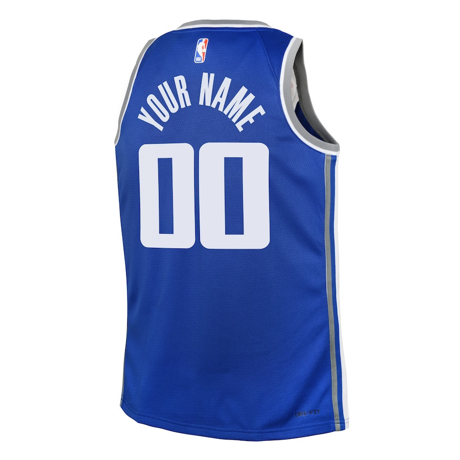 The Sacramento Kings 2023/24 City Edition Swingman Custom Youth Jersey in blue offers lightweight, breathable comfort for young fans. Crafted from 100% polyester, this jersey wicks away moisture to keep kids cool during games, practice, or casual wear. Its classic fit and clean design make it perfect for layering or standalone fan gear. Ideal for basketball enthusiasts, team supporters, or everyday athletic outfits. Note: This is a generic sports apparel item, not affiliated with any professional teams or leagues. Available in youth sizes S, M, L, XL for growing athletes. Durable construction ensures long-lasting wear through seasons of cheering and play.