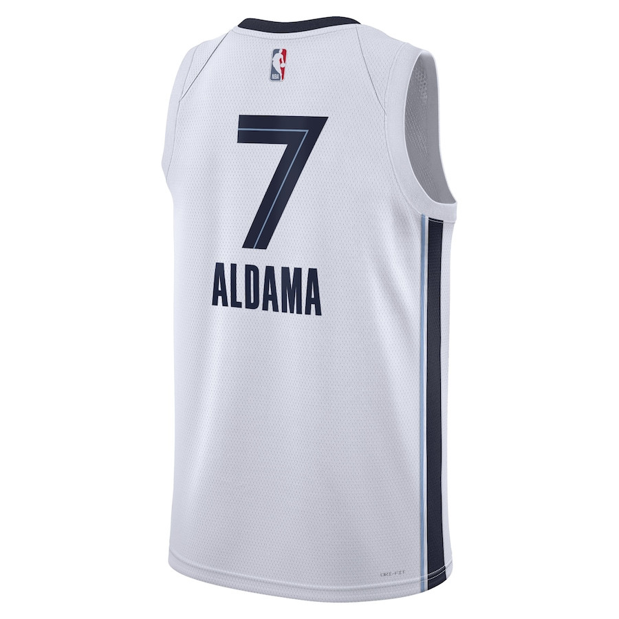 The Santi Aldama 7 Memphis Grizzlies Unisex Swingman Jersey in Association Edition White offers lightweight, breathable athletic wear for fans and athletes. Crafted from 100% polyester, this jersey ensures comfort and durability during training, games, or casual everyday wear. Its classic fit and clean design make it versatile for pairing with various outfits, keeping you cool and dry with superior moisture-wicking properties. Perfect for showing team spirit in a high-quality, fan-inspired look. Available in adult sizes S to 3XL. New condition, unisex design for all.