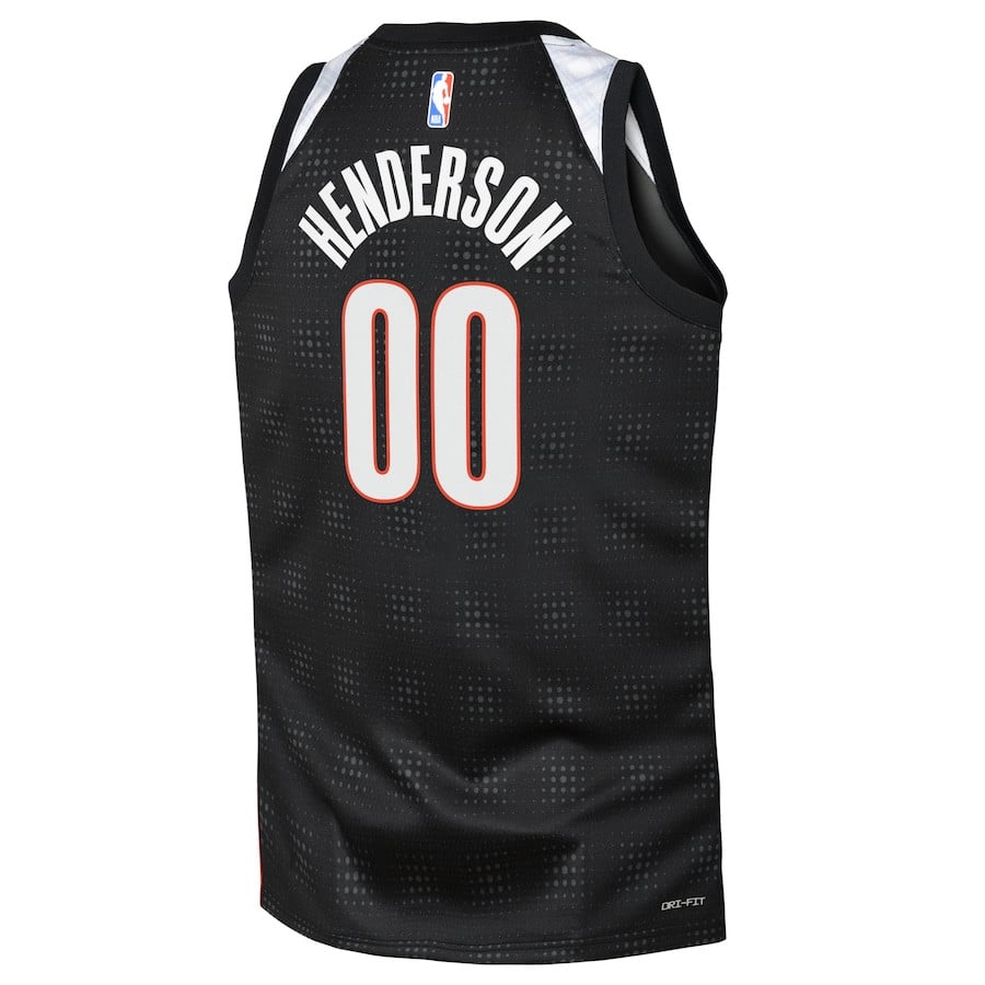Show your support for Scoot Henderson and the Portland Trail Blazers with this 2024/25 Swingman Player Youth Jersey in City Edition black design. Crafted from 100% polyester, this lightweight and breathable jersey ensures comfort during games, training, or casual fan wear. The classic fit offers durability and style, perfect for young fans. Features the iconic #00 player numbering and team graphics. Ideal for basketball enthusiasts, everyday athletic activities, or collecting team memorabilia. Available in youth sizes S to 3XL. New condition, generic sports apparel not affiliated with official teams.