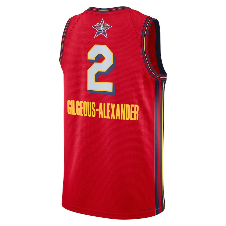 Experience the Shai Gilgeous-Alexander 2 NBA All Star 2025 Swingman Unisex Jersey in striking red multicolor design. Crafted from 100% polyester, this lightweight and breathable fabric ensures optimal comfort and ventilation during workouts, training sessions, or casual everyday wear. The classic fit offers versatility, pairing effortlessly with jeans, shorts, or athletic gear for fan-inspired outfits or game-day style.