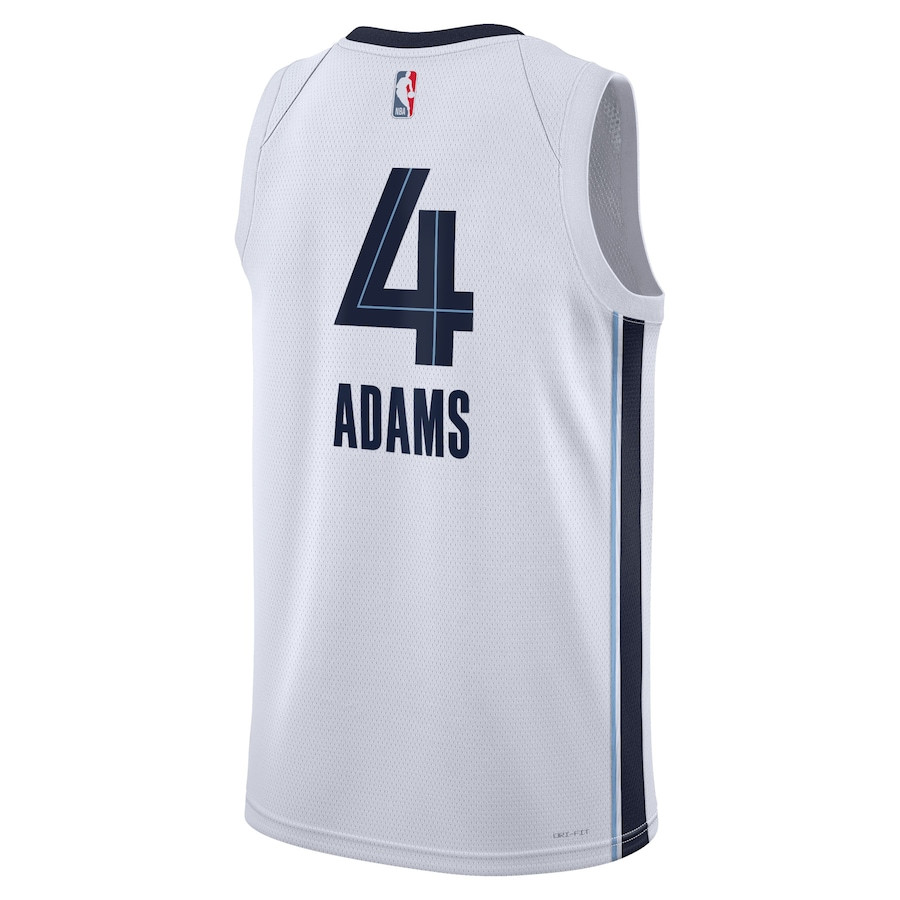 The Steven Adams 4 Memphis Grizzlies Unisex Swingman Jersey in Association Edition White is a lightweight, breathable sports jersey perfect for fans, athletes, and casual wear. Crafted from 100% polyester, it offers superior comfort, moisture-wicking performance, and durability for training sessions, game days, or everyday outfits. The classic fit and clean design feature the iconic Memphis Grizzlies styling with player number 4, making it ideal for showing team spirit. Available in adult sizes S-3XL, this new unisex jersey combines athletic functionality with versatile style for basketball enthusiasts.