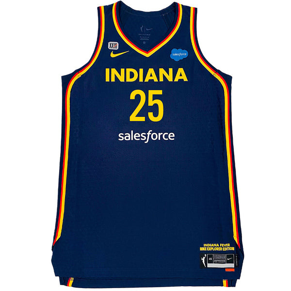 The Tiffany Mitchell 25 Indiana Fever Explorer Swingman Jersey in navy is a lightweight, breathable sports jersey perfect for fans, athletes, and casual wear. Crafted from 100% polyester, it offers superior comfort, moisture-wicking performance, and durability for training sessions, games, or everyday outfits. The classic swingman design features the player’s name and number 25, team graphics, and a relaxed fit that pairs easily with shorts, jeans, or athletic gear. Available in adult sizes S-3XL, this unisex jersey ensures a comfortable feel whether you’re cheering on the Indiana Fever, playing basketball, or showing team spirit. New condition, multicolor accents on navy base.