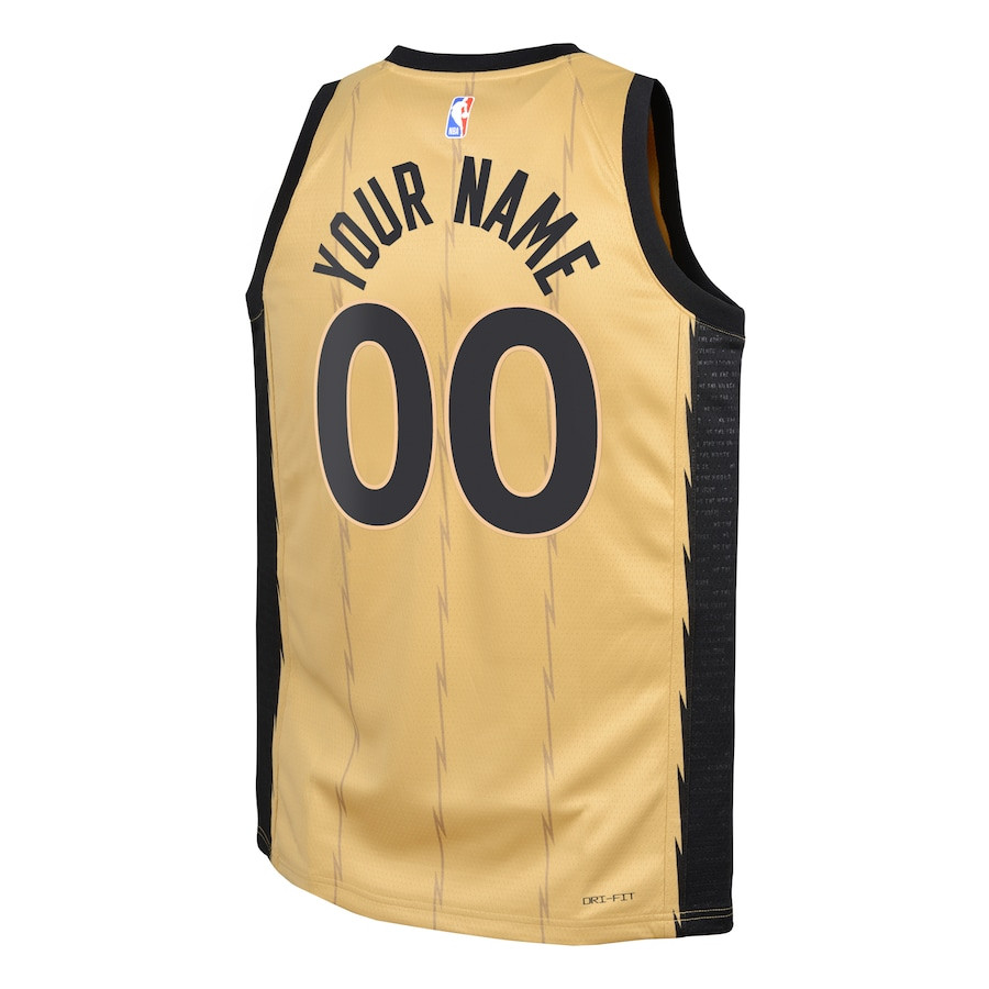 The Toronto Raptors 2023/24 City Edition Swingman Custom Youth Jersey in gold offers lightweight, breathable comfort for young fans. Crafted from 100% polyester, this jersey wicks away moisture to keep kids cool during games, practice, or casual wear. Its classic fit and clean design make it versatile for school, sports events, or everyday outfits inspired by the team. Though a generic sports apparel item not affiliated with professional teams, it captures the excitement of basketball fandom. Available in youth sizes S, M, L, XL, 2XL, 3XL with multicolor accents. Durable construction ensures long-lasting wear for active kids.
