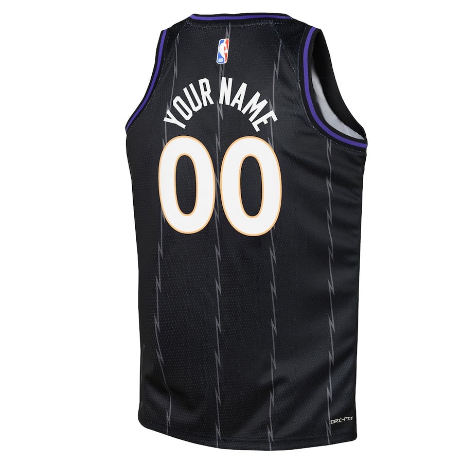 The Toronto Raptors 2024/25 Swingman Custom Youth Jersey in City Edition Black offers lightweight, breathable comfort for young fans. Crafted from 100% polyester, this jersey wicks away moisture to keep you cool during games, practice, or casual wear. Its classic fit and clean design make it versatile for fan outfits or everyday style. Though designed with Toronto Raptors inspiration, this is a generic sports apparel item not affiliated with any professional teams or leagues. Available in youth sizes S to 3XL, it’s perfect for training, daily activities, or showing team spirit. Durable construction ensures long-lasting wear for active kids.
