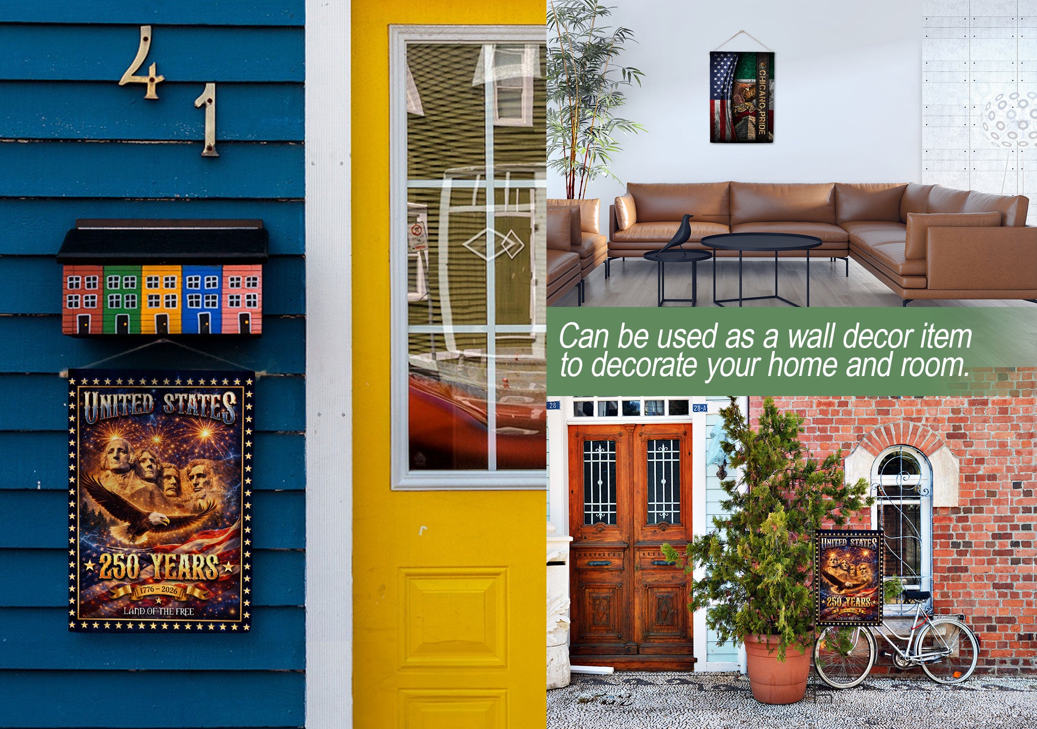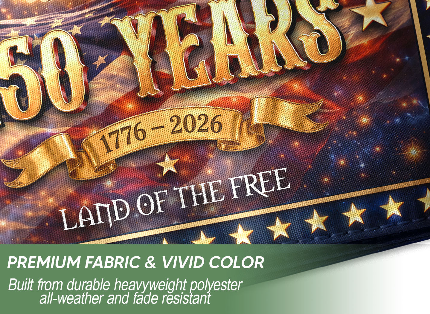 Celebrate 250 years of American independence with this United States garden flag featuring the iconic Mount Rushmore presidents, a majestic soaring eagle, and bold 1776-2026 patriotic motifs. Crafted from durable, weather-resistant polyester fabric, this double-sided yard flag measures approximately 12.5 x 18 inches, perfect for porches, gardens, mailboxes, or holiday displays. The vibrant red, white, and blue design with gold accents symbolizes national pride, strength, and heritage. Easy to hang with a sleeve for standard flag poles or stakes (pole not included). Ideal for Fourth of July, Memorial Day, Independence Day celebrations, or everyday patriotic decor. Bring history and freedom to your outdoor space with this high-quality, fade-resistant garden flag.