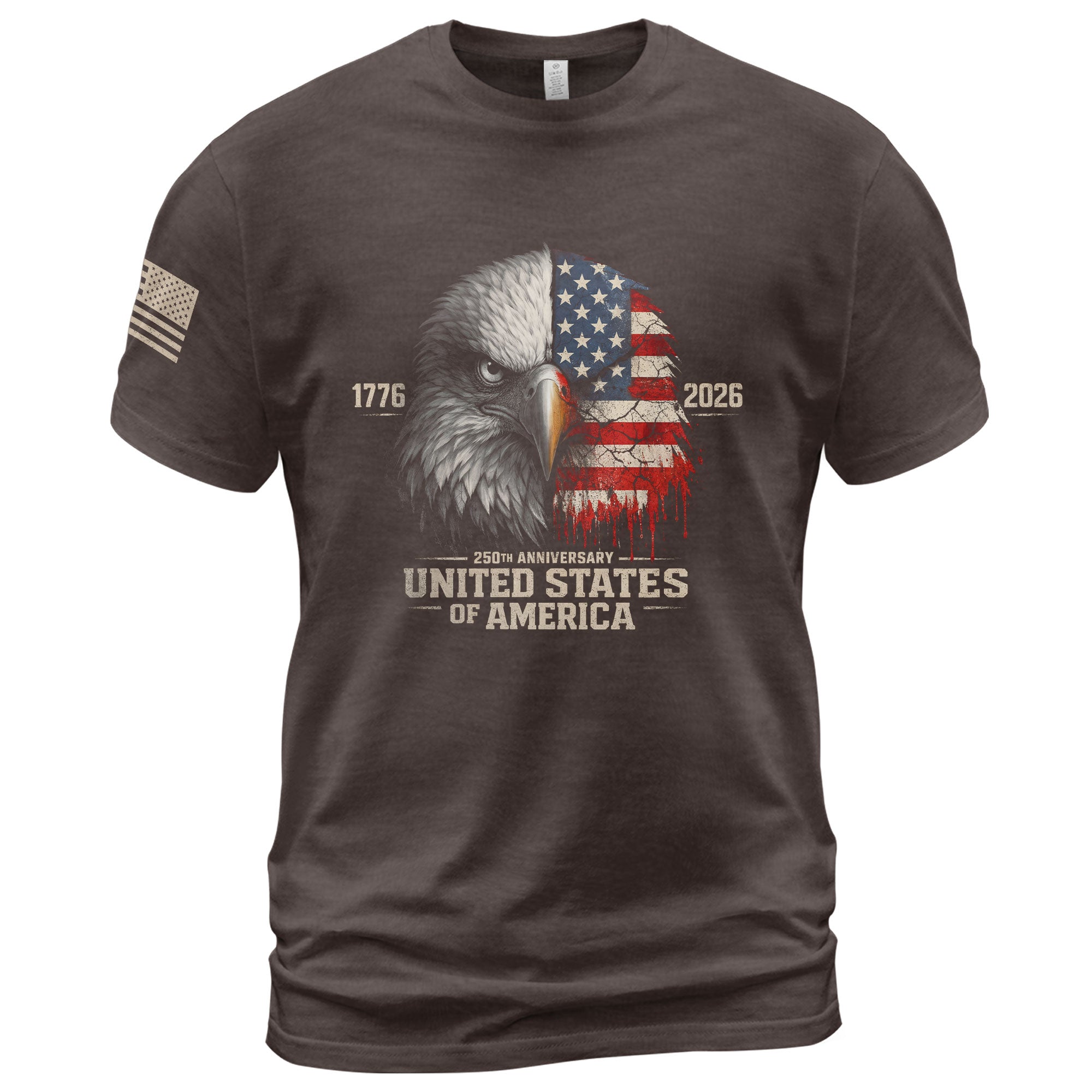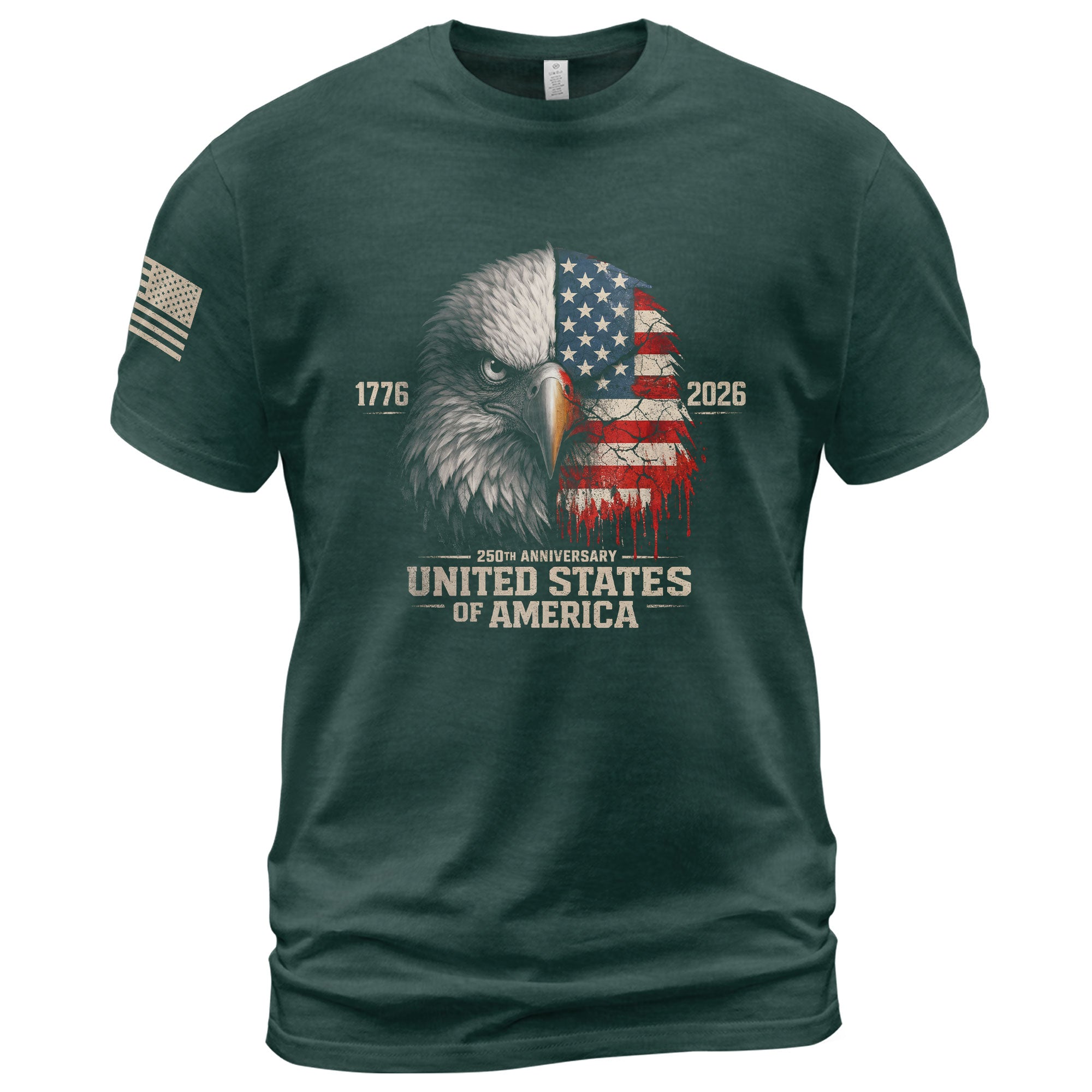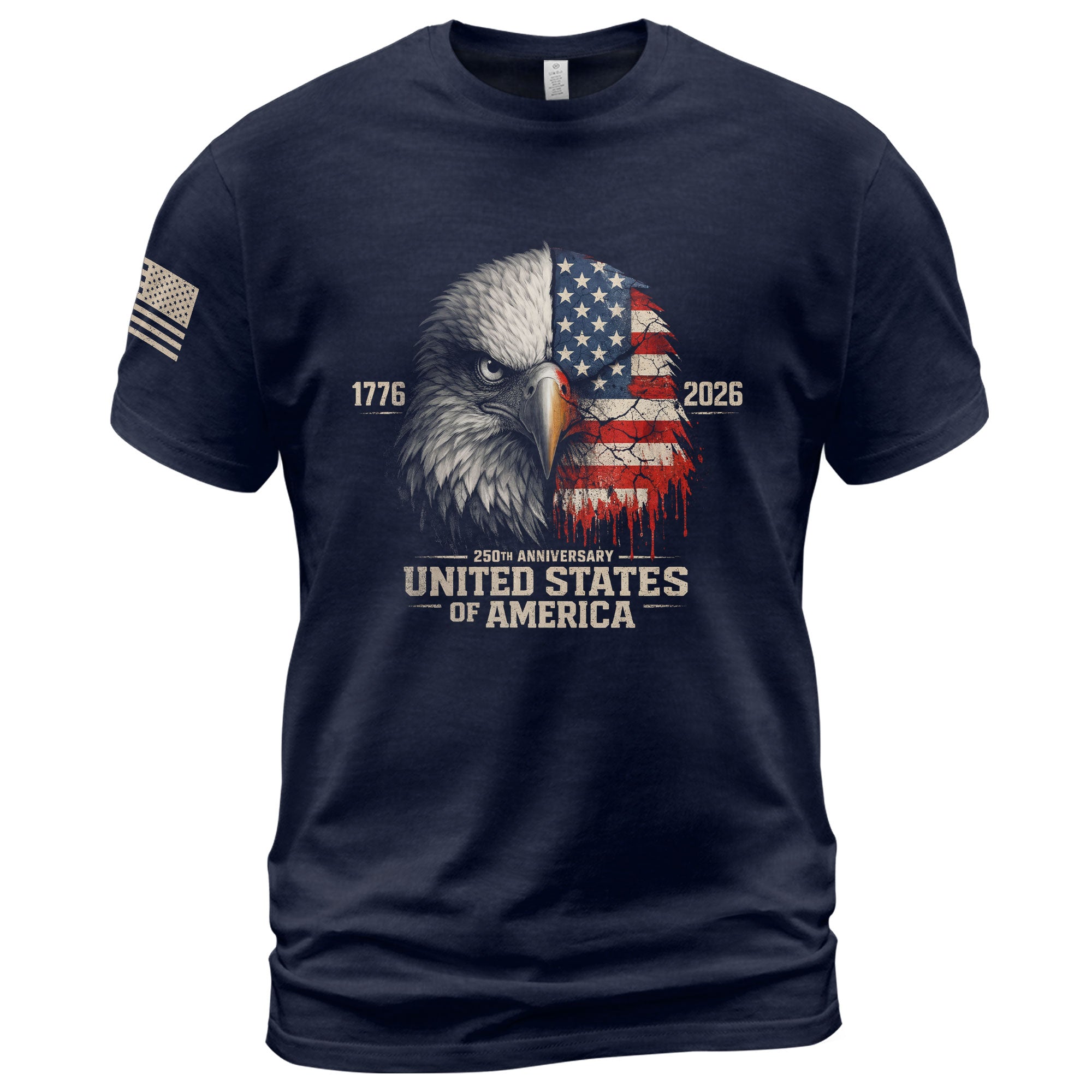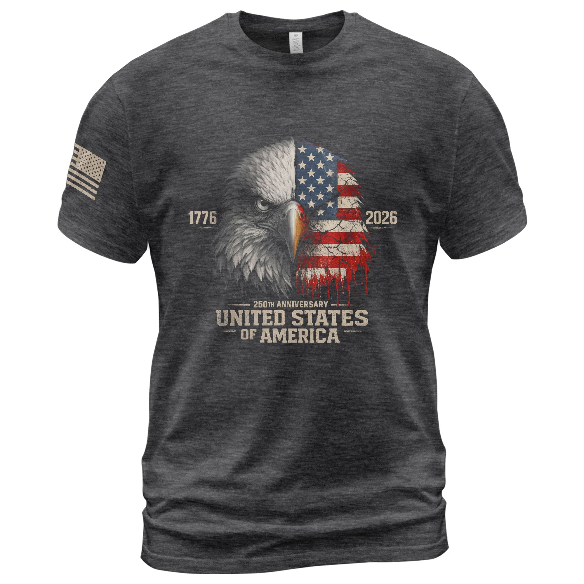 Celebrate America’s 250th anniversary from 1776 to 2026 with this patriotic T-shirt featuring a distressed USA flag and majestic eagle graphic. The vintage-inspired design captures timeless national pride, courage, and resilience. Crafted from soft, comfortable cotton blend fabric, this unisex tee offers a rugged, worn-in look perfect for Independence Day celebrations, veterans, history enthusiasts, or everyday wear. Available in multiple sizes for men, women, and youth. Machine washable for easy care. Show your American spirit with this limited-edition 250 years tee.