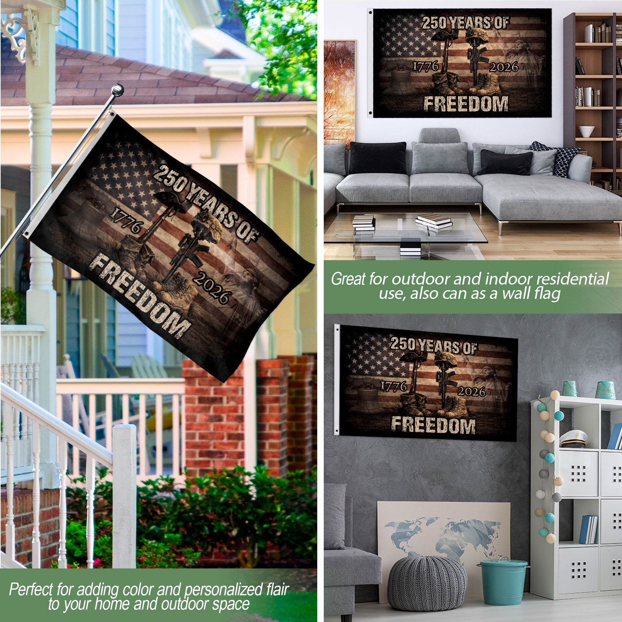 Celebrate America’s 250th anniversary from 1776 to 2026 with this striking United States patriotic flag. The bold design features an iconic eagle emblem symbolizing freedom, strength, and national pride, making it a timeless tribute to American heritage. Crafted from durable, weather-resistant polyester fabric, this banner maintains vibrant colors in all conditions. Ideal for outdoor display on poles, indoor wall decor, or special events like parades, Independence Day celebrations, and historical commemorations. The classic red, white, and blue palette with gold accents embodies unity, tradition, and enduring patriotism. Perfect for veterans, history enthusiasts, and patriots honoring the nation’s journey. Easy to hang with reinforced grommets for secure, versatile installation. Standard flag size ensures broad usability for homes, events, or public displays.