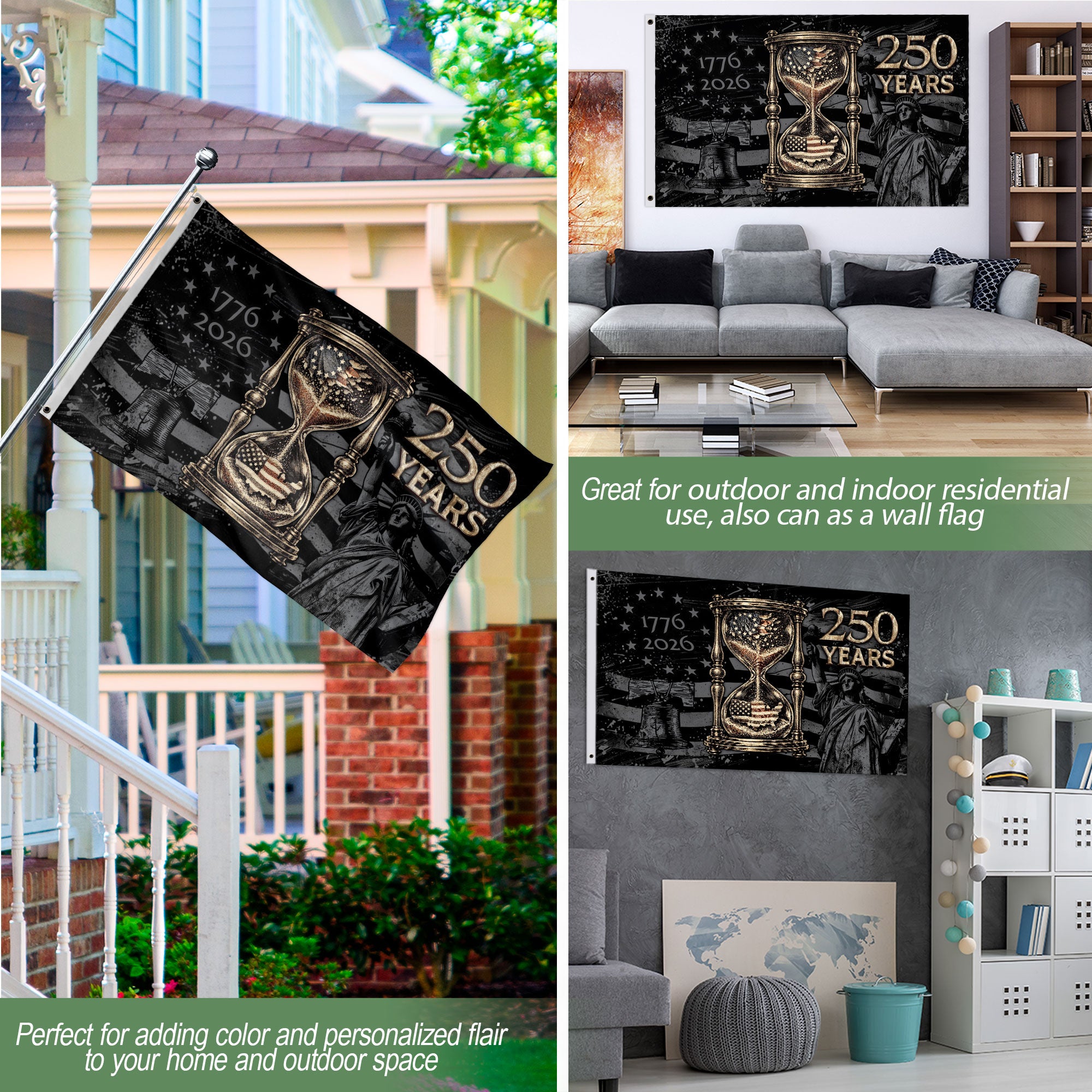 Celebrate the 250th anniversary of the United States from 1776 to 2026 with this patriotic heritage flag featuring the iconic American eagle. This flag symbolizes freedom, strength, tradition, unity, and enduring patriotism. Perfect for displaying at home, events, or outdoor spaces to honor American history and national pride. Crafted with high-quality, weather-resistant materials for vibrant colors and long-lasting durability, it withstands wind, rain, and sun while maintaining its bold design. Ideal for veterans, history enthusiasts, and anyone proud of their American roots. Hang it on your porch, at parades, veterans’ events, or Fourth of July celebrations to showcase your patriotism. The striking American eagle design paired with the 1776-2026 dates makes it a meaningful tribute to 250 years of American independence.