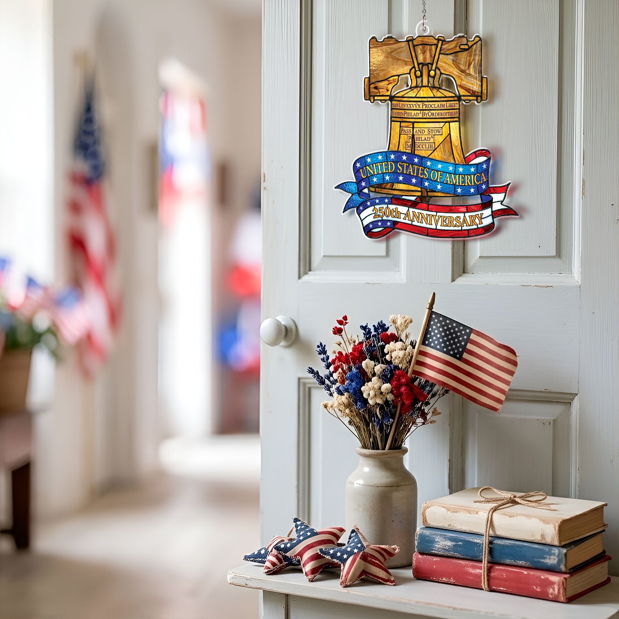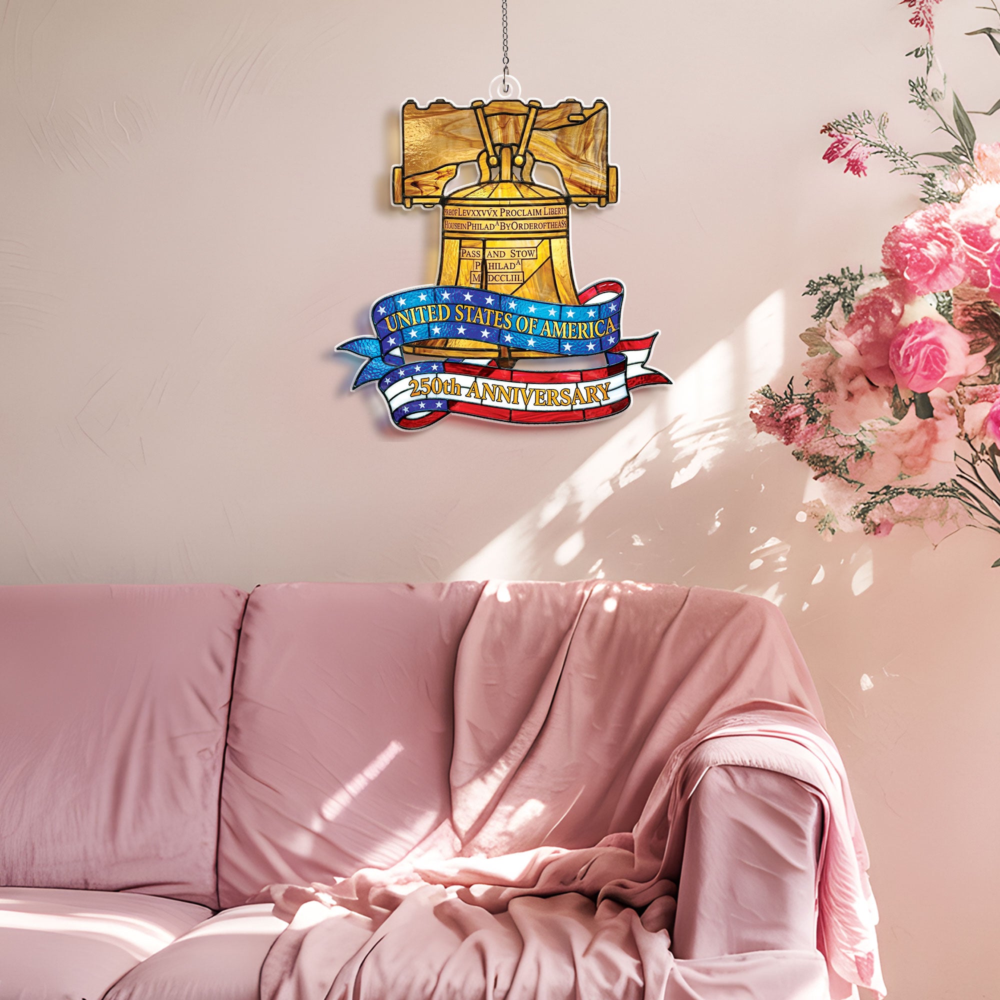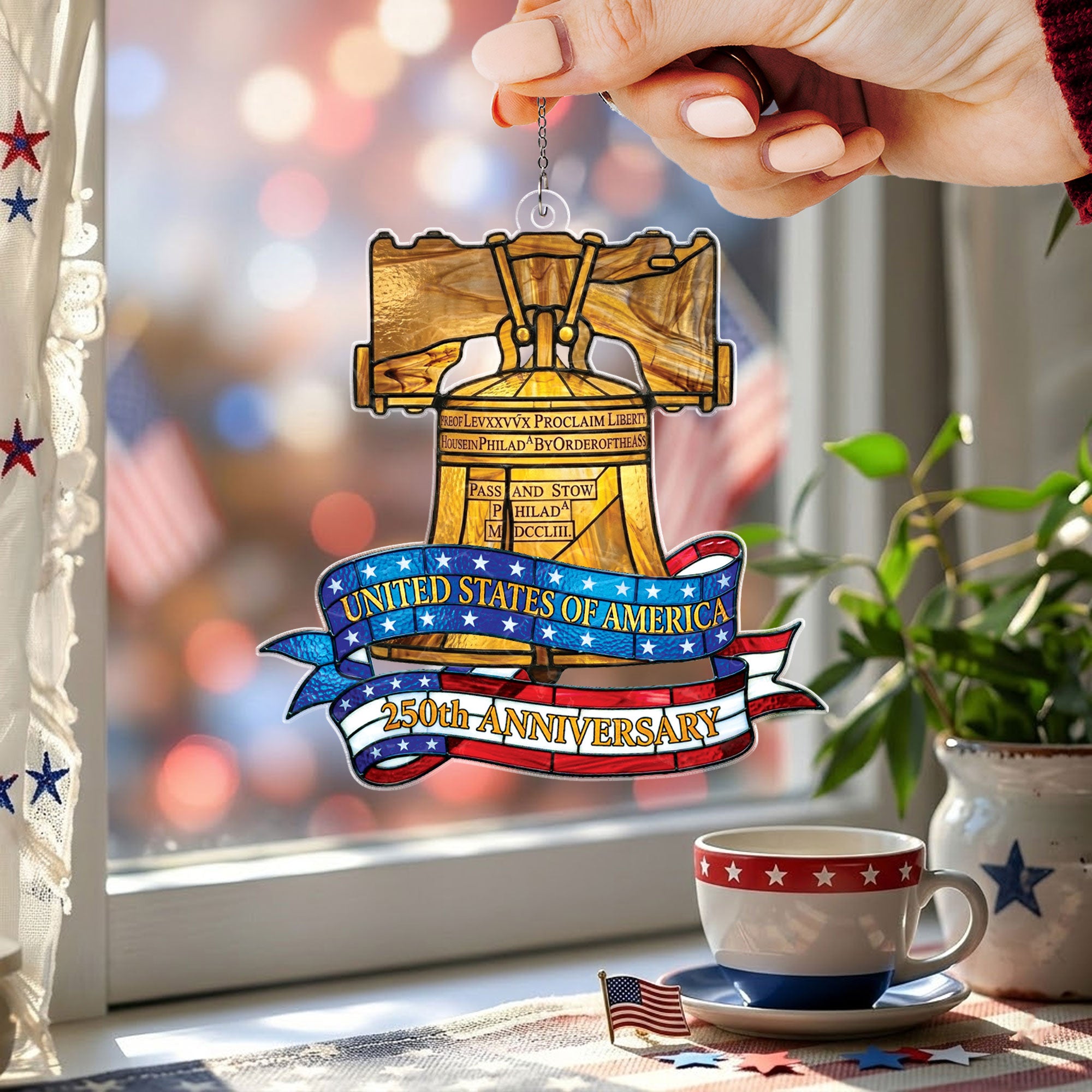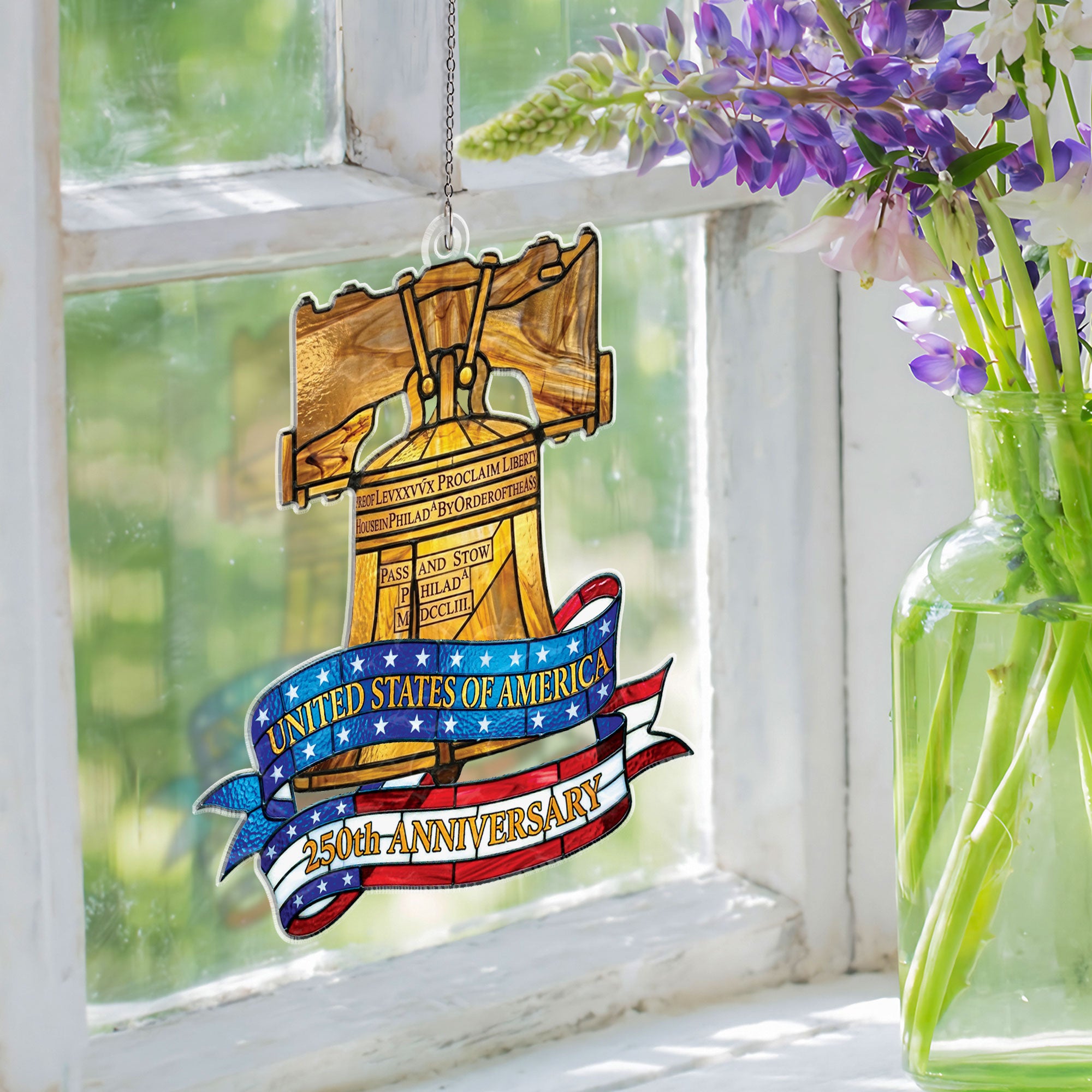 Celebrate America’s 250th anniversary with this stunning Philadelphia Liberty Bell heritage suncatcher ornament. Crafted from high-quality acrylic in a vibrant stained glass style, it captures the iconic symbol of liberty in radiant colors. Hang it in a window to create beautiful rainbows and dazzling light displays throughout your home. Perfect for patriotic decor, historical enthusiasts, or as a meaningful gift commemorating US independence. Durable, lightweight, and easy to display year-round on Christmas trees, mantels, or outdoor patios. Measures standard ornament size for versatile use. Embrace the enduring spirit of freedom with this timeless piece of American heritage.