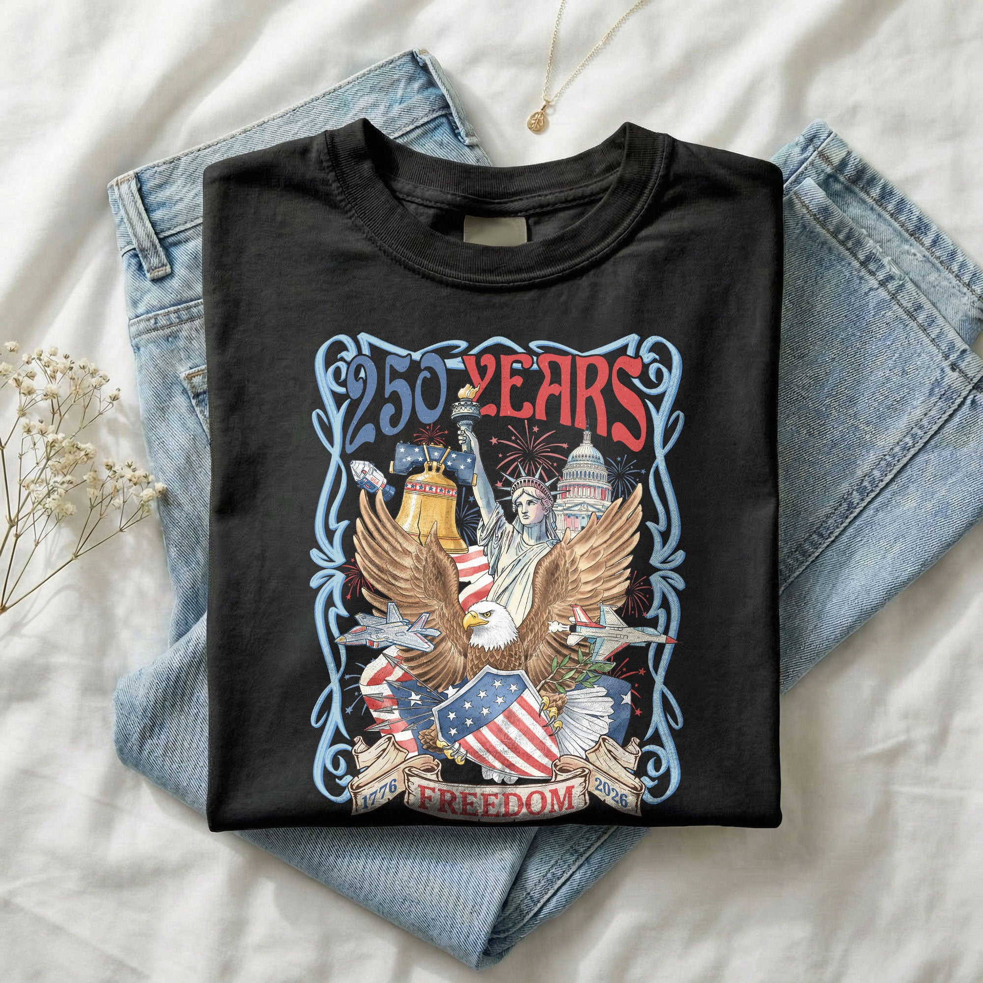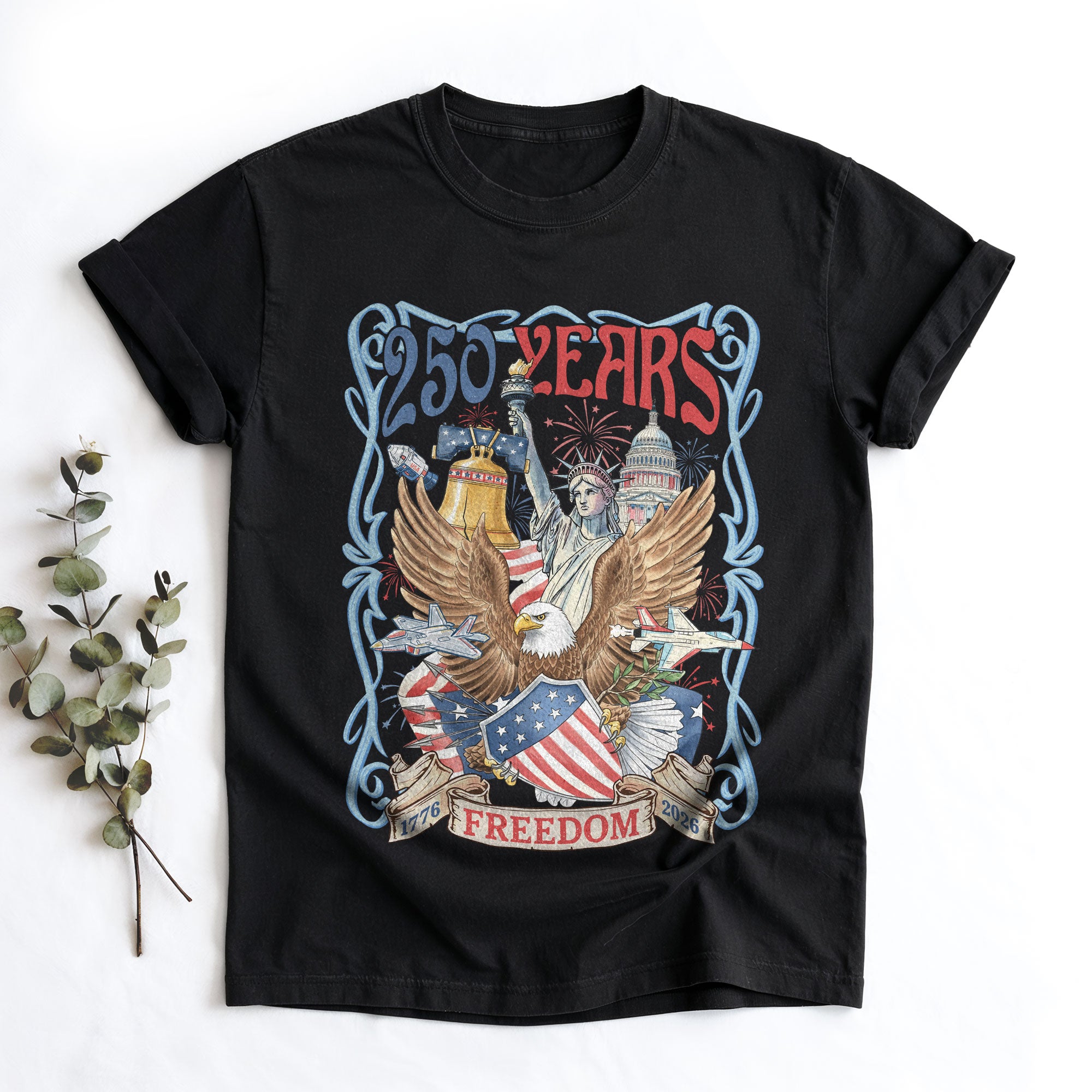 Celebrate America’s 250th anniversary of independence with this retro graphic T-shirt. Featuring a bold 1776 Independence Day 2026 design, this tee captures the spirit of freedom, pride, and unity. Crafted from soft, breathable cotton for all-day comfort, it’s perfect for 4th of July barbecues, patriotic parades, historical events, or casual everyday wear. The vintage-inspired print highlights the enduring promise of liberty, making it an essential piece for history buffs, patriots, and anyone honoring the USA’s milestone birthday. Available in multiple sizes for men, women, and unisex fit. Machine washable and durable for repeated wear during summer festivals and commemorative celebrations.