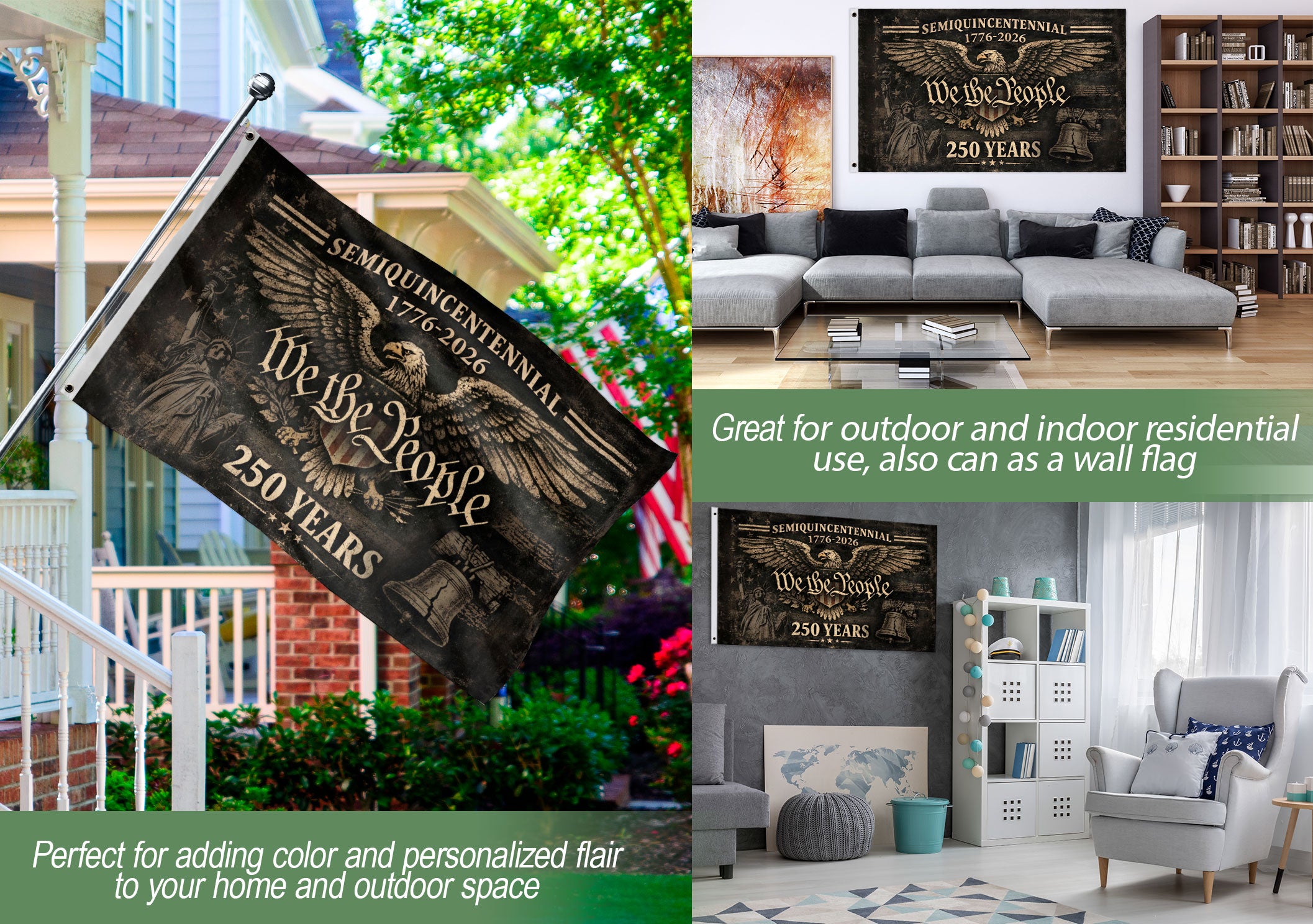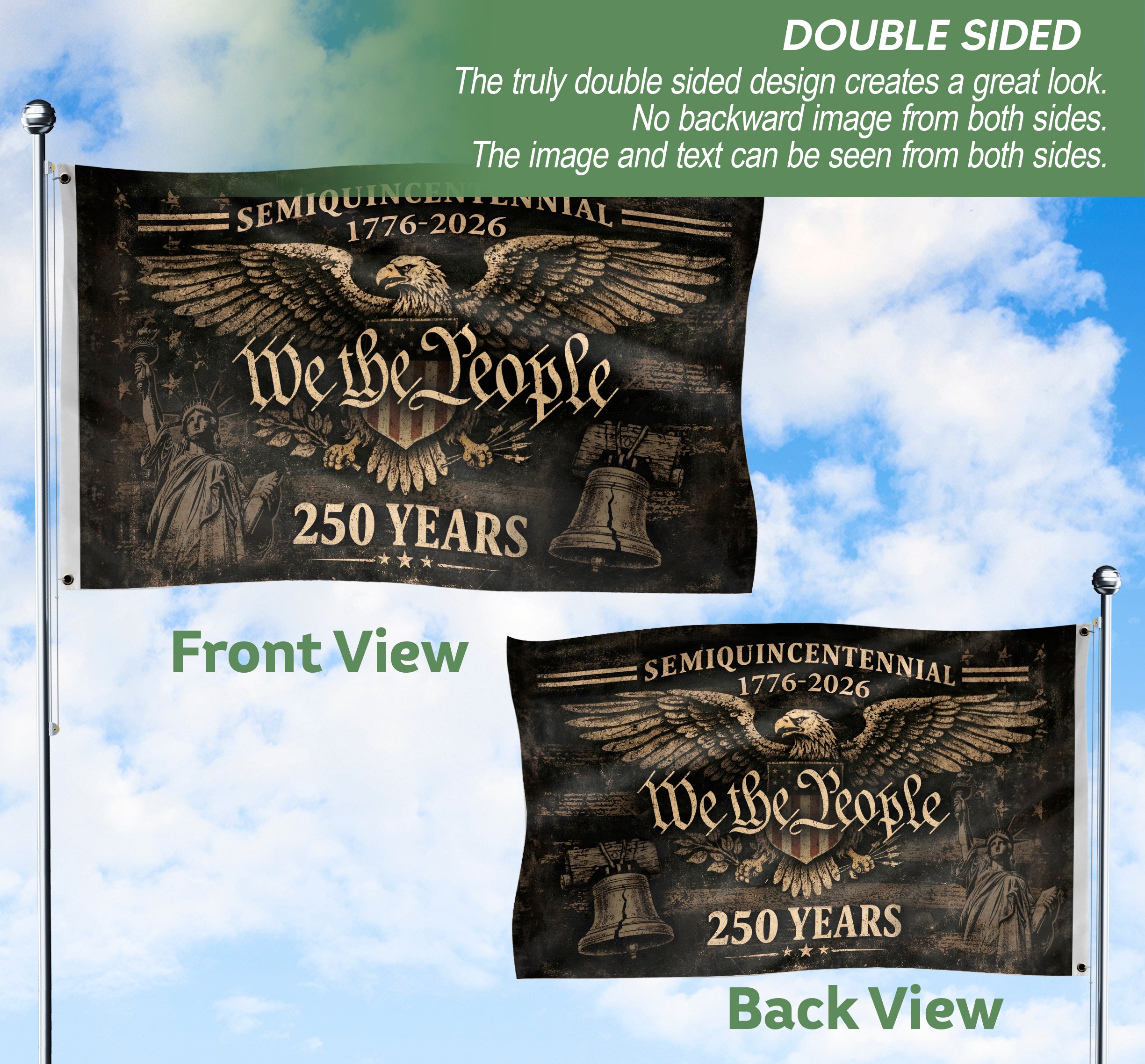 Celebrate 250 years of American independence with this striking USA 250 Years garden flag, featuring the iconic American eagle and ‘We The People’ motto. Spanning 1776-2026, this patriotic flag embodies strength, resilience, and national heritage. Perfect for garden displays, porches, or outdoor spaces to showcase your pride in freedom and the enduring spirit of the nation. Durable design withstands weather, ideal for holidays, historical commemorations, or everyday patriotism. Easy to hang with standard garden flag hardware.