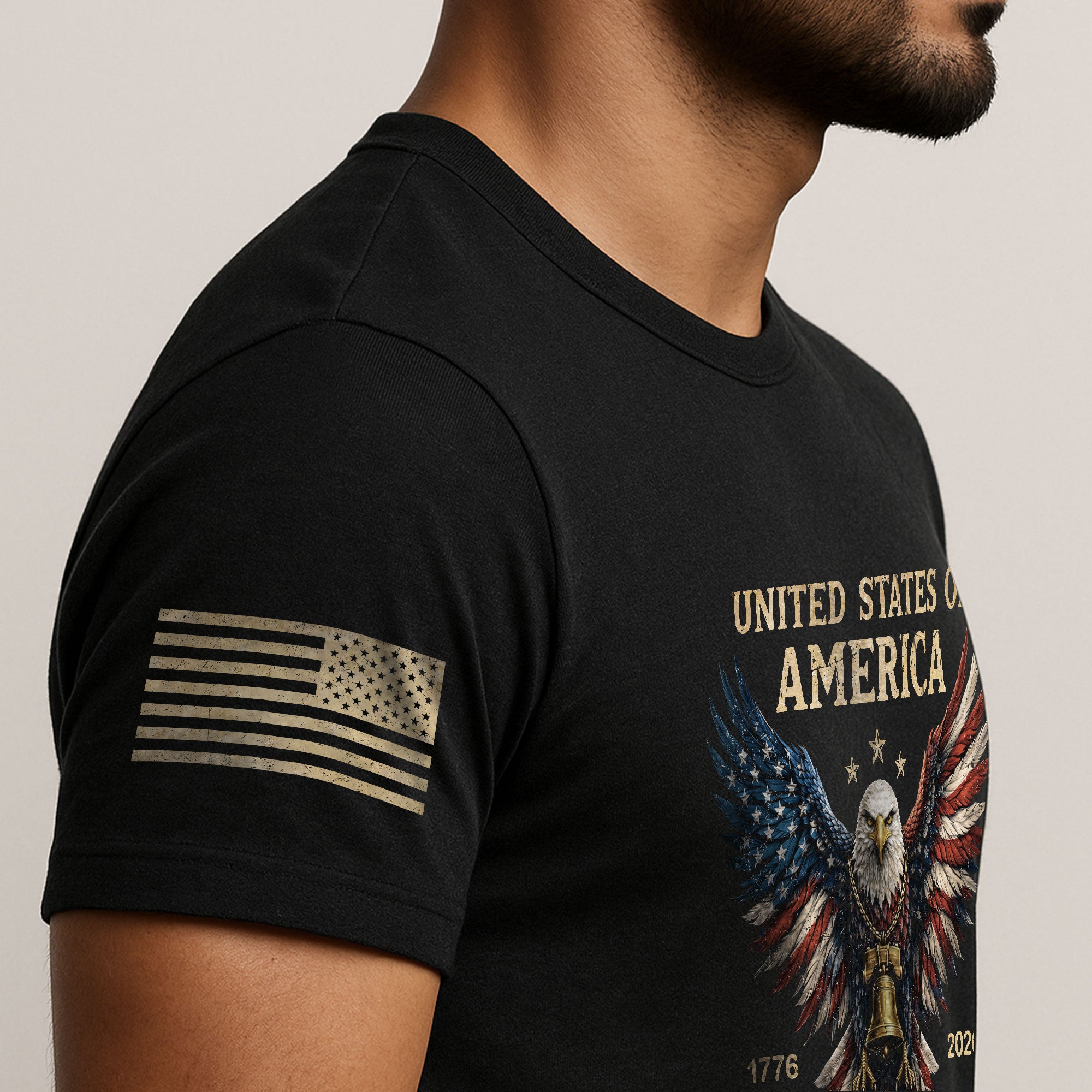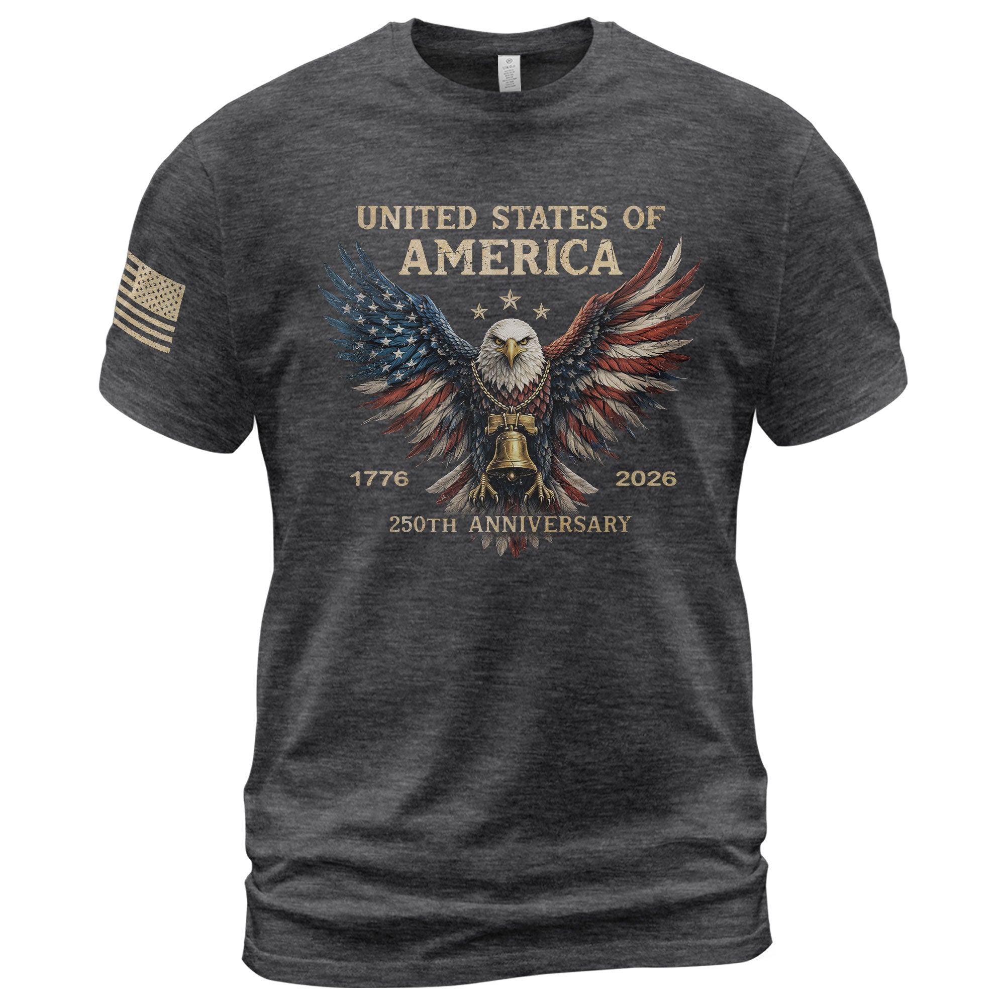 Celebrate America’s 250th anniversary from 1776 to 2026 with this striking patriotic T-shirt featuring a winged eagle and American flag design. The bold imagery symbolizes courage, unity, independence, and the enduring spirit of freedom. Perfect for patriots, history enthusiasts, and Fourth of July events, veterans’ gatherings, or everyday wear to show national pride. Crafted for comfort with soft, breathable fabric that holds up wash after wash. Available in multiple sizes for men, women, and unisex fit. Ideal for barbecues, parades, or casual outings. Embrace the legacy of the United States with this essential commemorative apparel.