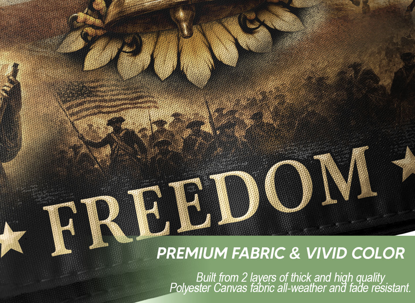 Celebrate America’s 250th anniversary with this striking USA 250 Years of Freedom Flag featuring Liberty Bell and eagle imagery. This patriotic flag honors the journey from 1776 to 2026, symbolizing roots of freedom, power of the people, history, and resilience. Perfect for displaying national pride at home, events, or outdoor gatherings. Crafted with durable materials to withstand the elements while showcasing bold, vibrant colors and iconic American symbols. Ideal for patriots, history enthusiasts, and collectors commemorating the semiquincentennial.