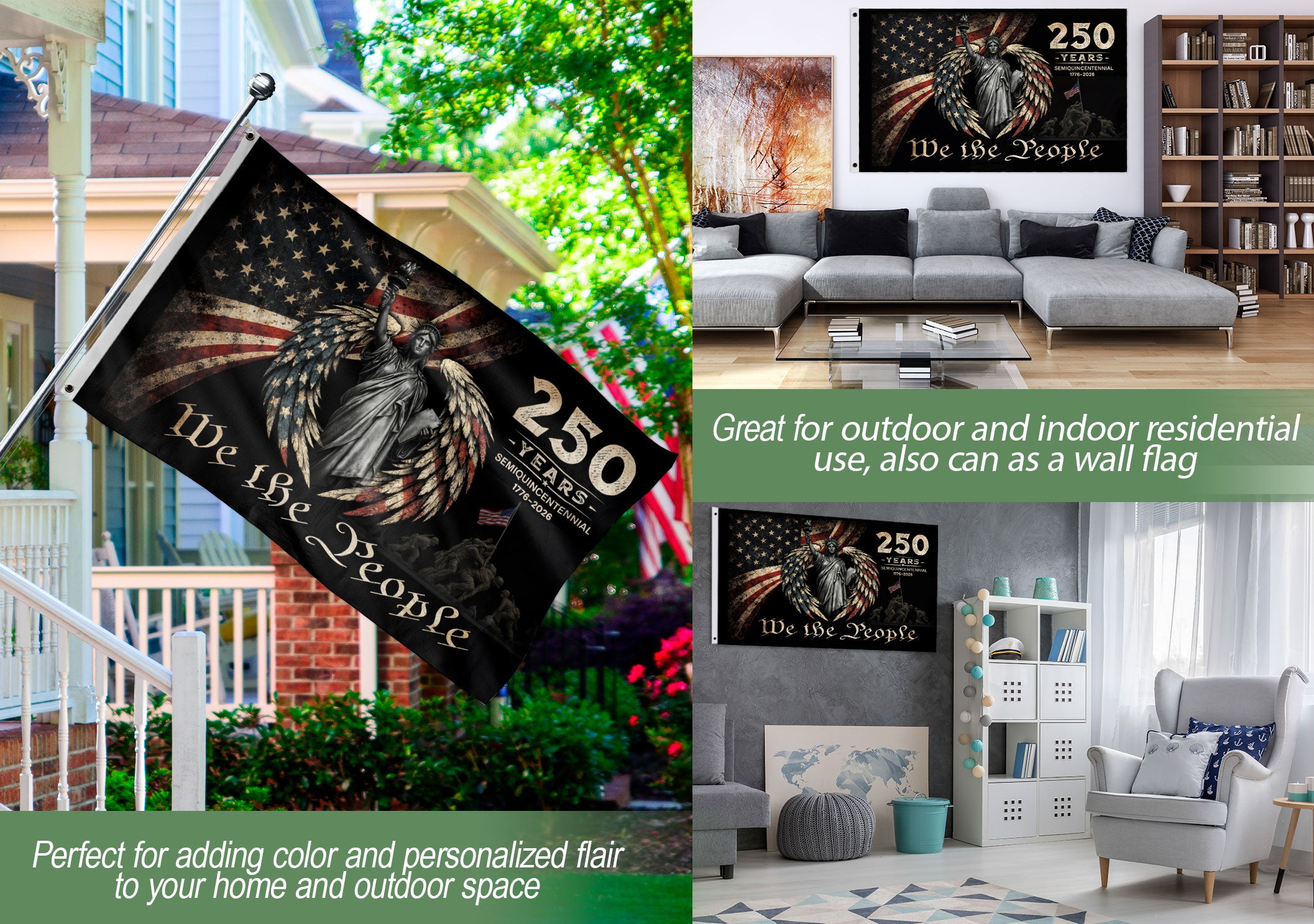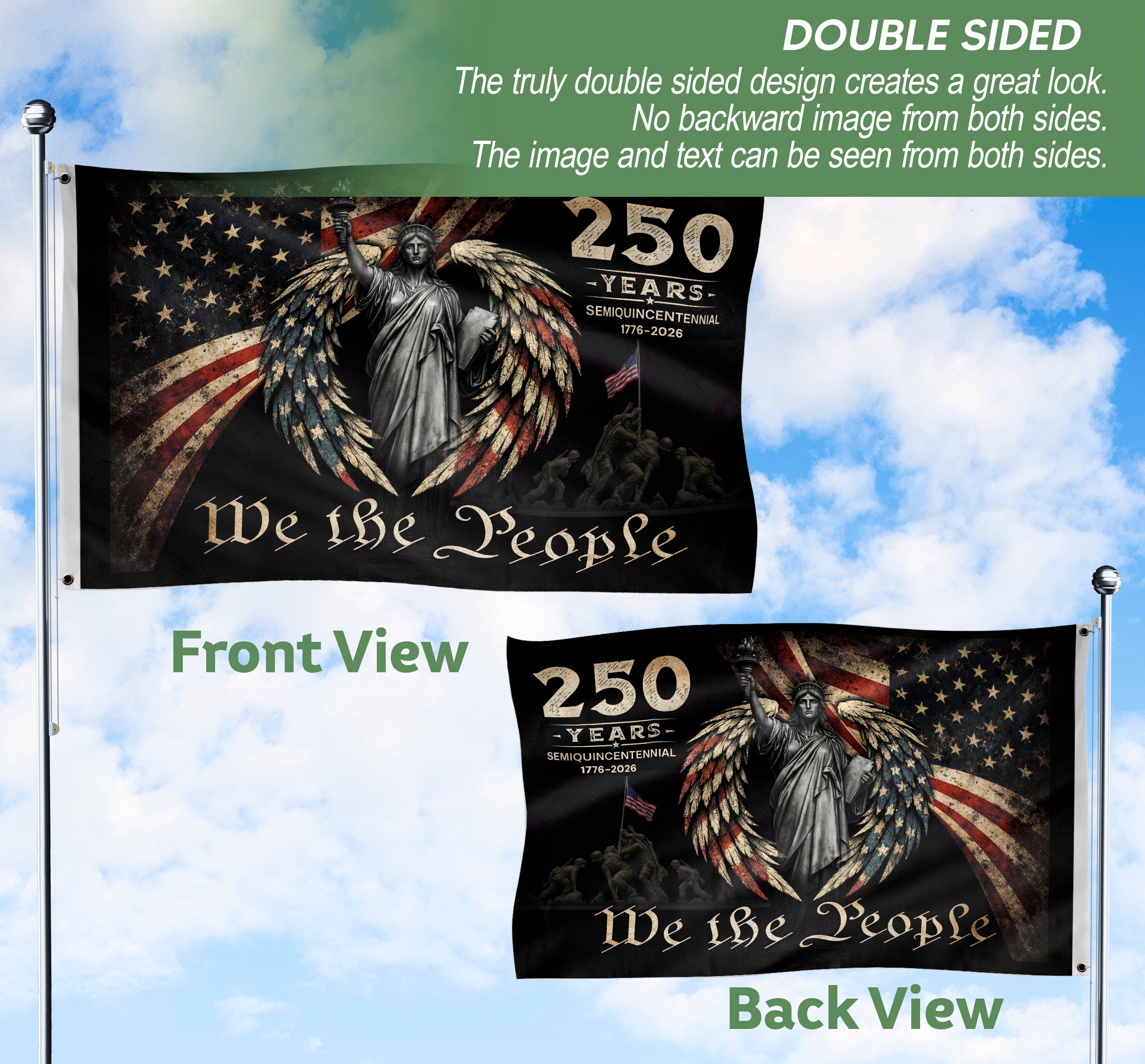 Celebrate 250 years of American independence with this USA 250th Anniversary Flag commemorating 1776-2026. Featuring the iconic ‘We The People’ inscription alongside the majestic Statue of Liberty, this patriotic flag embodies the core values of unity, liberty, and democracy. Crafted for durability and vibrant display, it’s perfect for homes, offices, events, or outdoor celebrations. Honor national heritage and founding principles with this symbolic design that captures the spirit of American freedom. Ideal for Fourth of July, Memorial Day, or everyday patriotism.