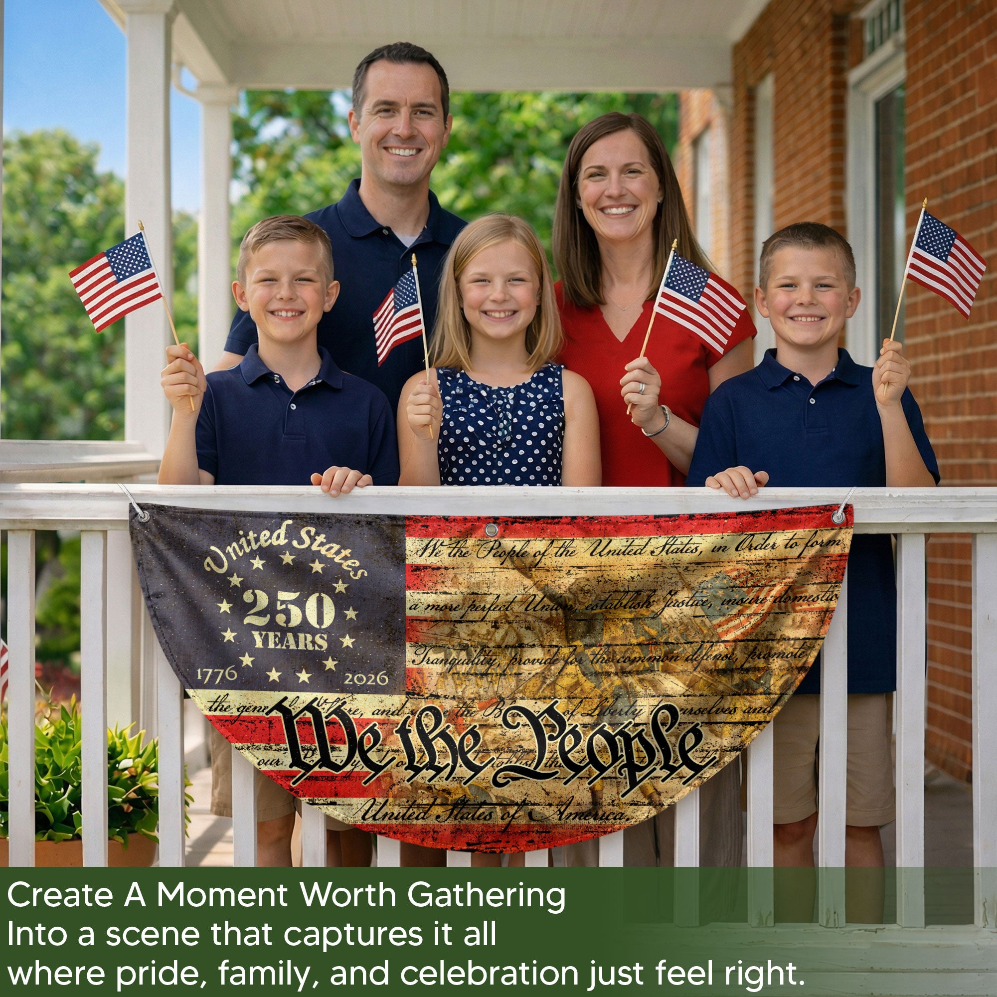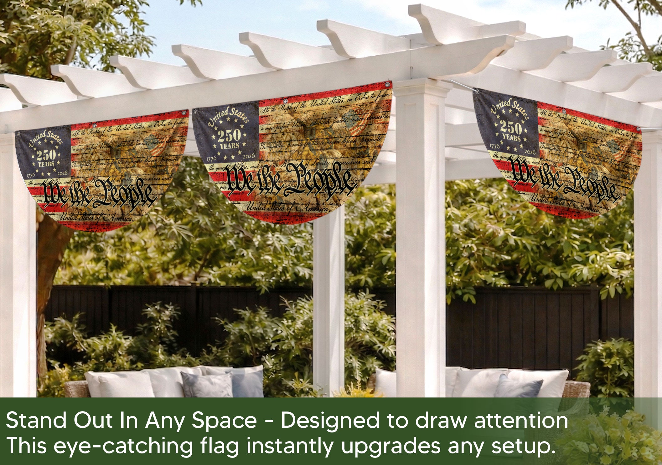 Celebrate the United States’ 250th anniversary in 2026 with this durable flag fence banner. Featuring the iconic ‘We the People’ phrase, a majestic eagle, stars, and stripes, it honors the journey from 1776 to 2026. Perfect for patriotic displays on fences, porches, or gardens, this eye-catching banner showcases American pride and historical legacy. Made for outdoor use, it withstands weather while adding a bold statement to celebrations, parades, or home decor.