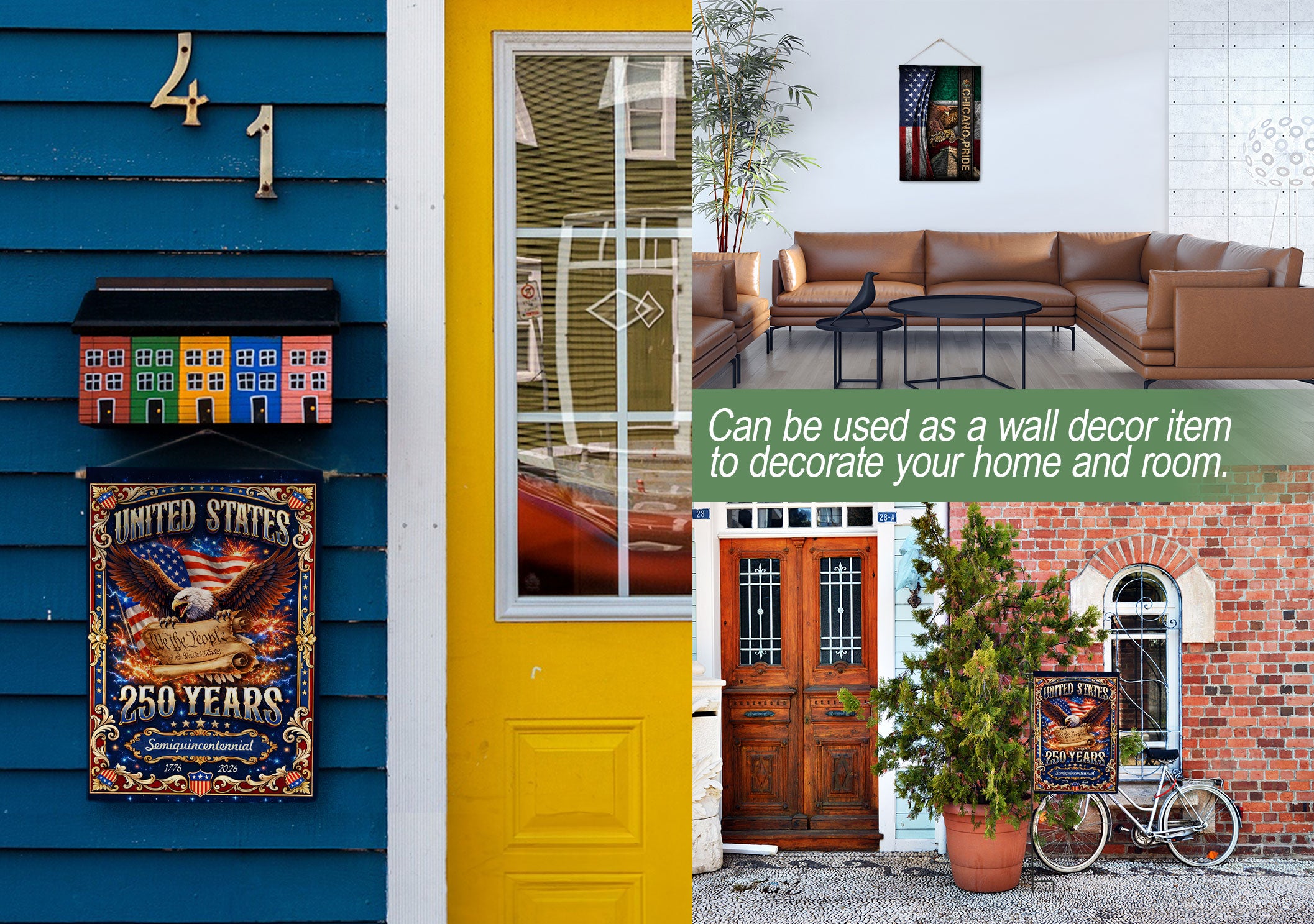 Celebrate America’s 250th anniversary from 1776 to 2026 with this double-sided garden flag featuring ‘We The People’ and Constitution-inspired imagery. Crafted for durability, this patriotic yard flag honors the principles that built the nation, symbolizing enduring liberty and freedom. Perfect for gardens, porches, or yards to display national pride. The high-quality, weather-resistant design ensures vibrant colors on both sides, making it ideal for holidays, Independence Day, or everyday patriotic displays.