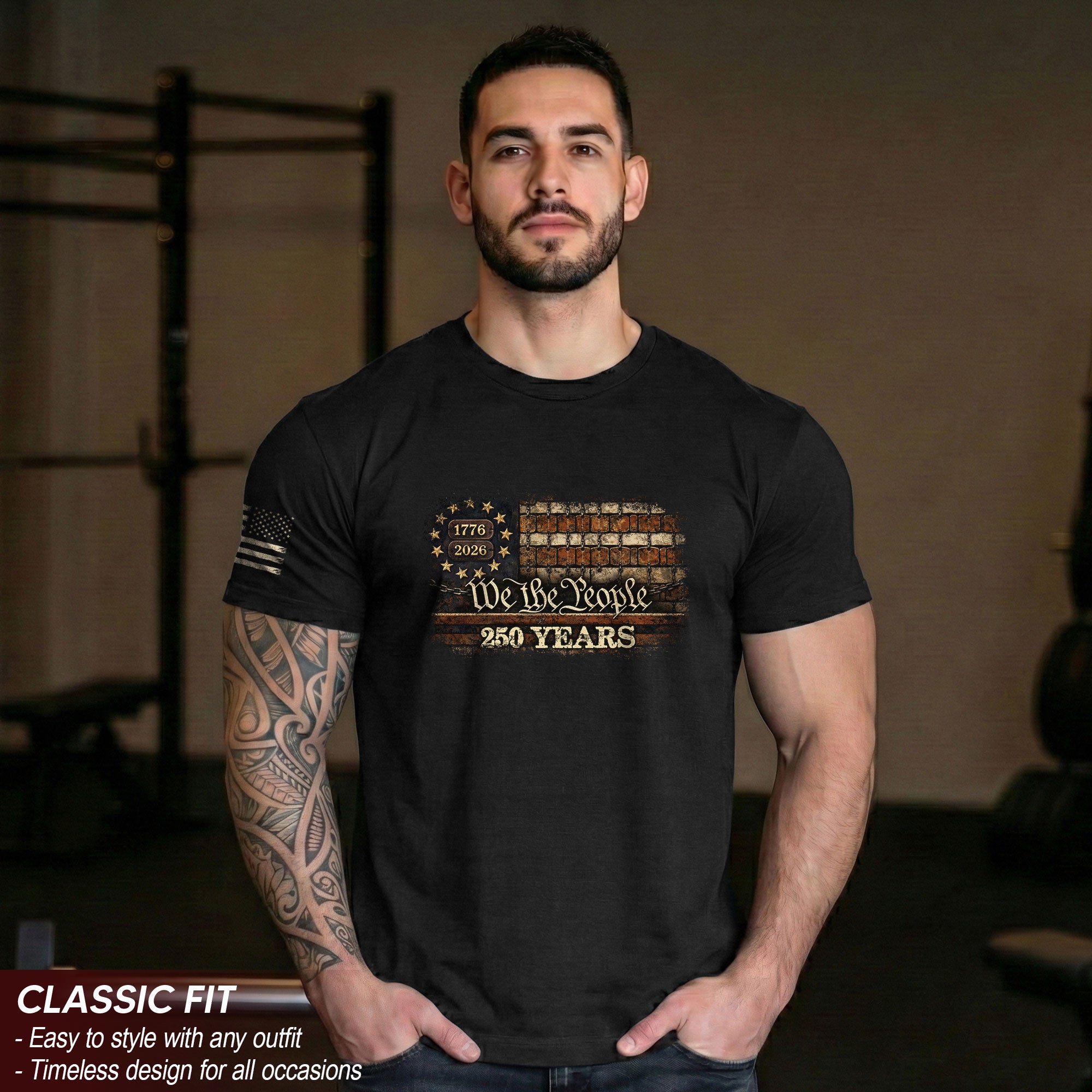 Celebrate America’s 250th anniversary from 1776 to 2026 with this patriotic T-shirt featuring the iconic We The People design blended with the American flag. This shirt embodies mental heritage, symbolizing the strength, resilience, and shared purpose passed down through generations. Crafted for comfort and durability, it’s perfect for patriots who cherish freedom and national pride. Wear it to barbecues, parades, historical events, or everyday to show your American spirit. Made from high-quality, soft cotton blend fabric that holds up wash after wash, ensuring vibrant colors and bold graphics stay sharp. Ideal for men, women, and history enthusiasts honoring the nation’s enduring legacy.