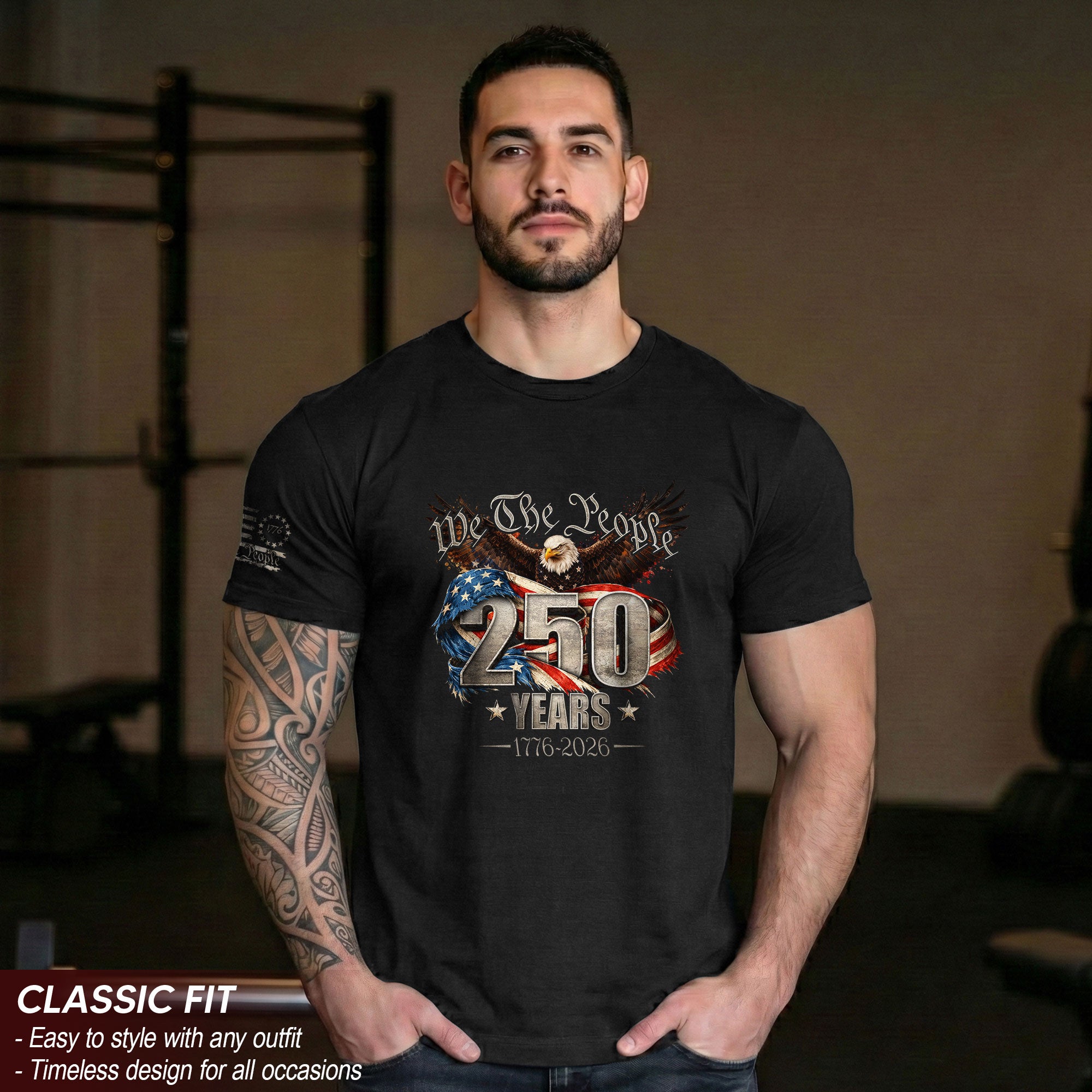 Celebrate America’s 250th anniversary from 1776 to 2026 with this striking patriotic T-shirt featuring a powerful eagle graphic and ‘We The People’ slogan. Crafted for comfort and style, this shirt embodies national pride, unity, and independence. Perfect for Independence Day celebrations, veterans, history enthusiasts, or everyday wear to show your American spirit. Made from high-quality, soft cotton blend fabric for all-day comfort. Available in multiple sizes for men, women, and unisex fit. Bold, vibrant print ensures long-lasting color and design integrity through washes. Ideal for barbecues, parades, rallies, or casual outings. Wear your patriotism confidently with this limited-edition design honoring 250 years of American strength.