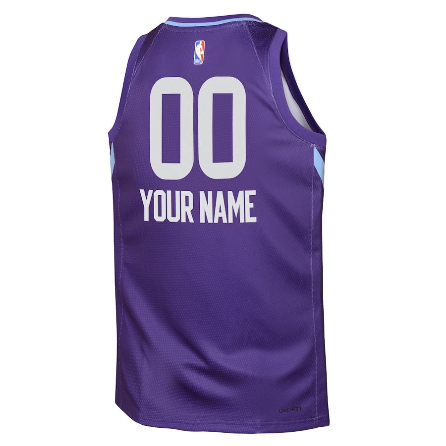 The Utah Jazz 2024/25 Swingman Custom Youth Jersey in City Edition Purple offers lightweight, breathable comfort for young fans. Crafted from 100% polyester, this jersey wicks away moisture to keep kids cool during games, practices, or casual outings. Its classic fit and clean design make it versatile for everyday wear or fan gear. Perfect for training sessions, school events, or showing team spirit. Note: This is a generic sports apparel item, not affiliated with any professional teams or leagues. Available in youth sizes S to 3XL with multicolor accents for a vibrant look.