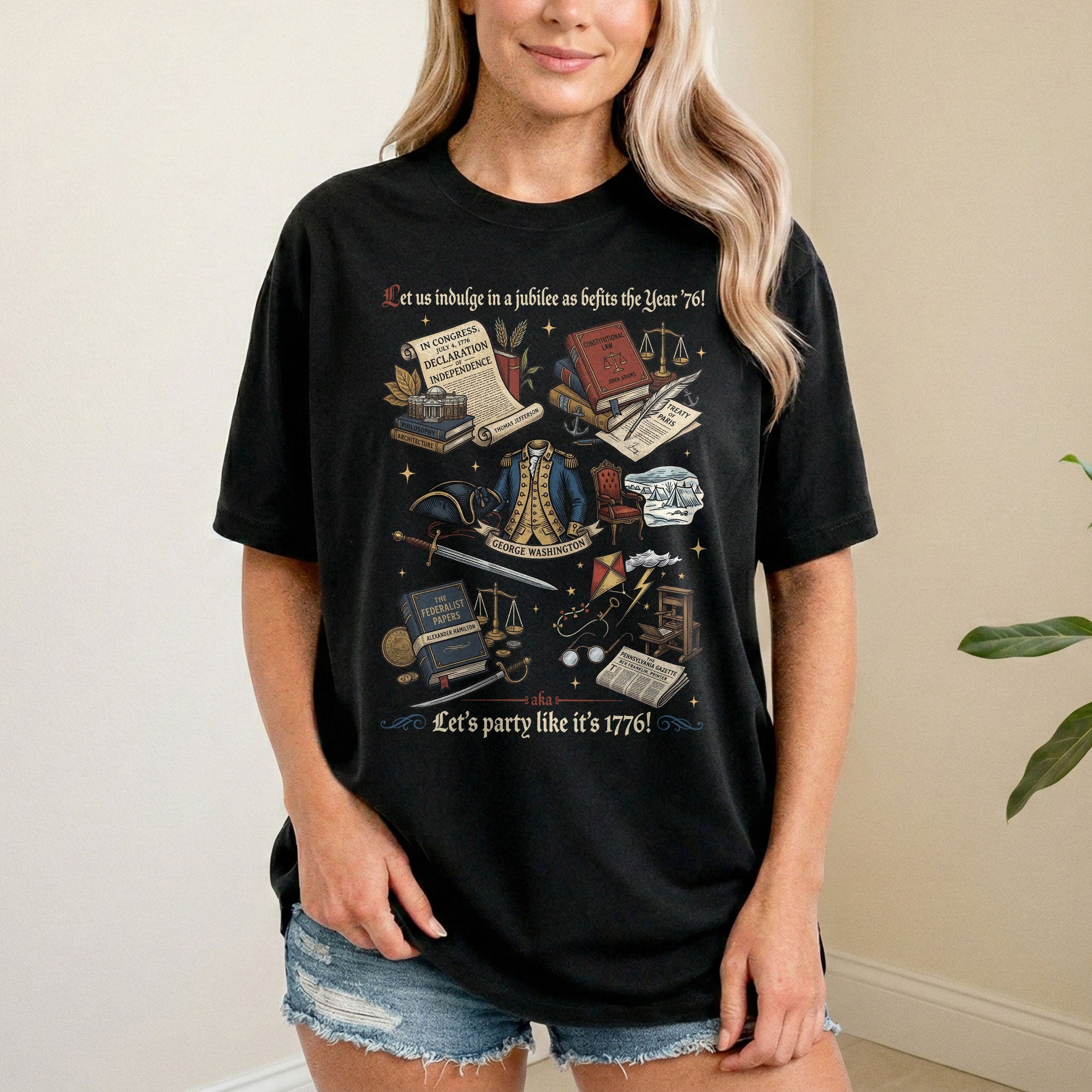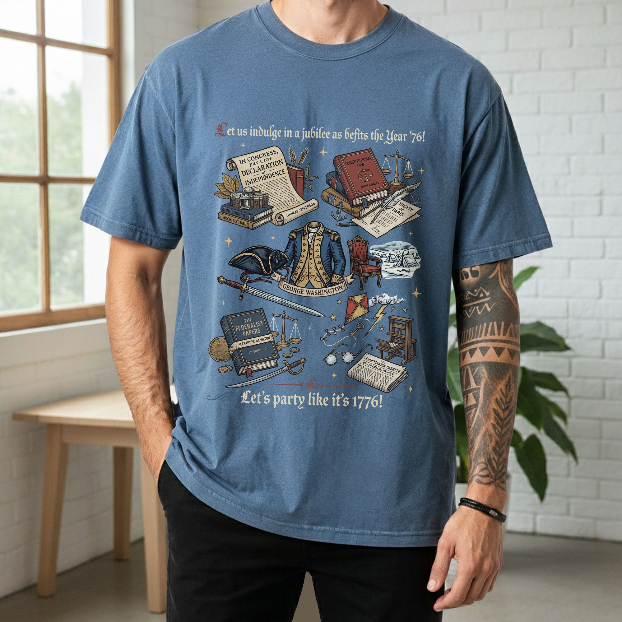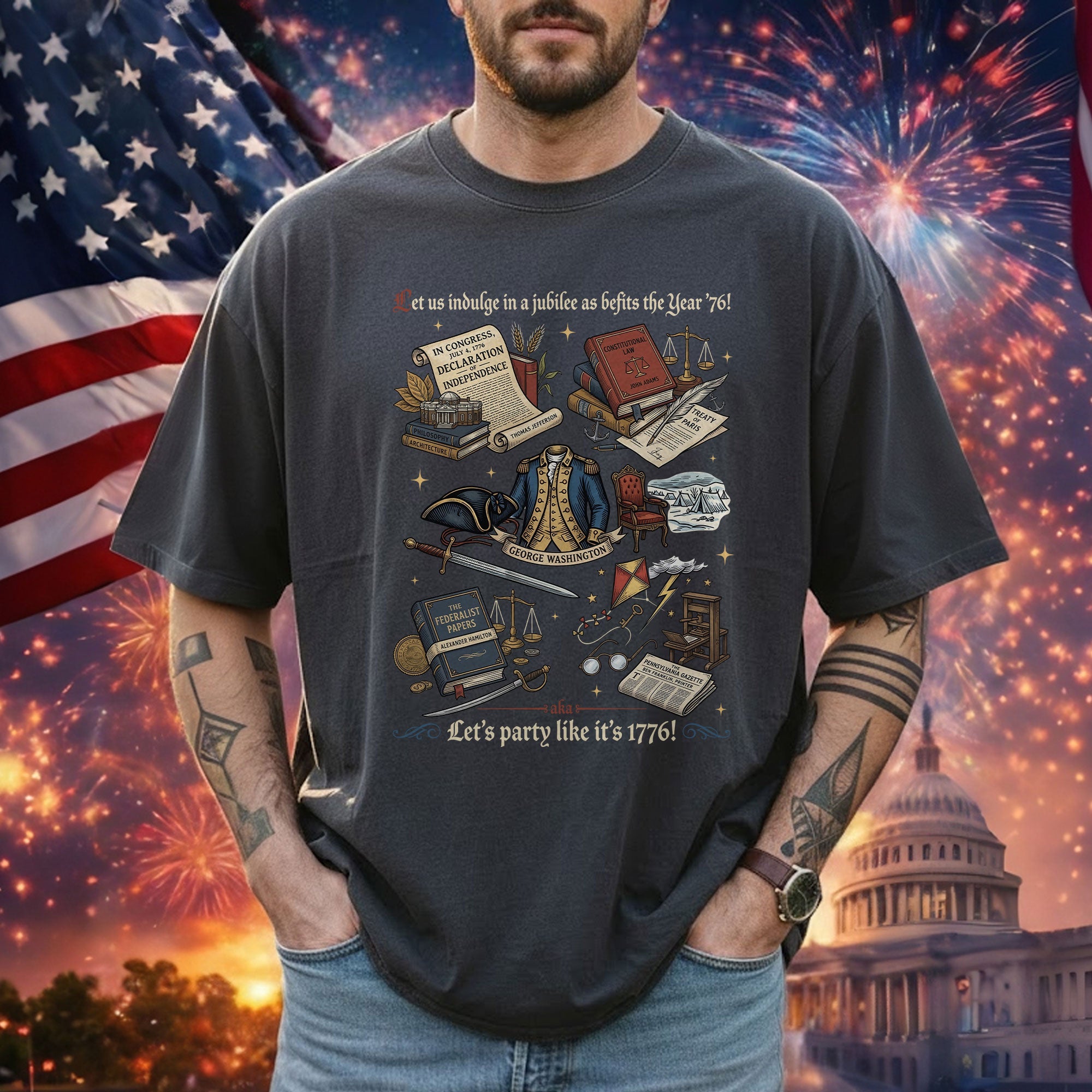 Celebrate American independence with this vintage 1776 patriotic T-shirt, featuring classic history icons and a timeless distressed design. Crafted from soft, breathable cotton for all-day comfort, it’s perfect for Independence Day celebrations, 4th of July barbecues, history buffs, and anyone proud of USA heritage. The retro graphic showcases key moments from 1776, evoking patriotism and national pride. Available in multiple sizes for men, women, and unisex fit. Machine washable and durable for everyday wear or special events like Memorial Day or Veterans Day.