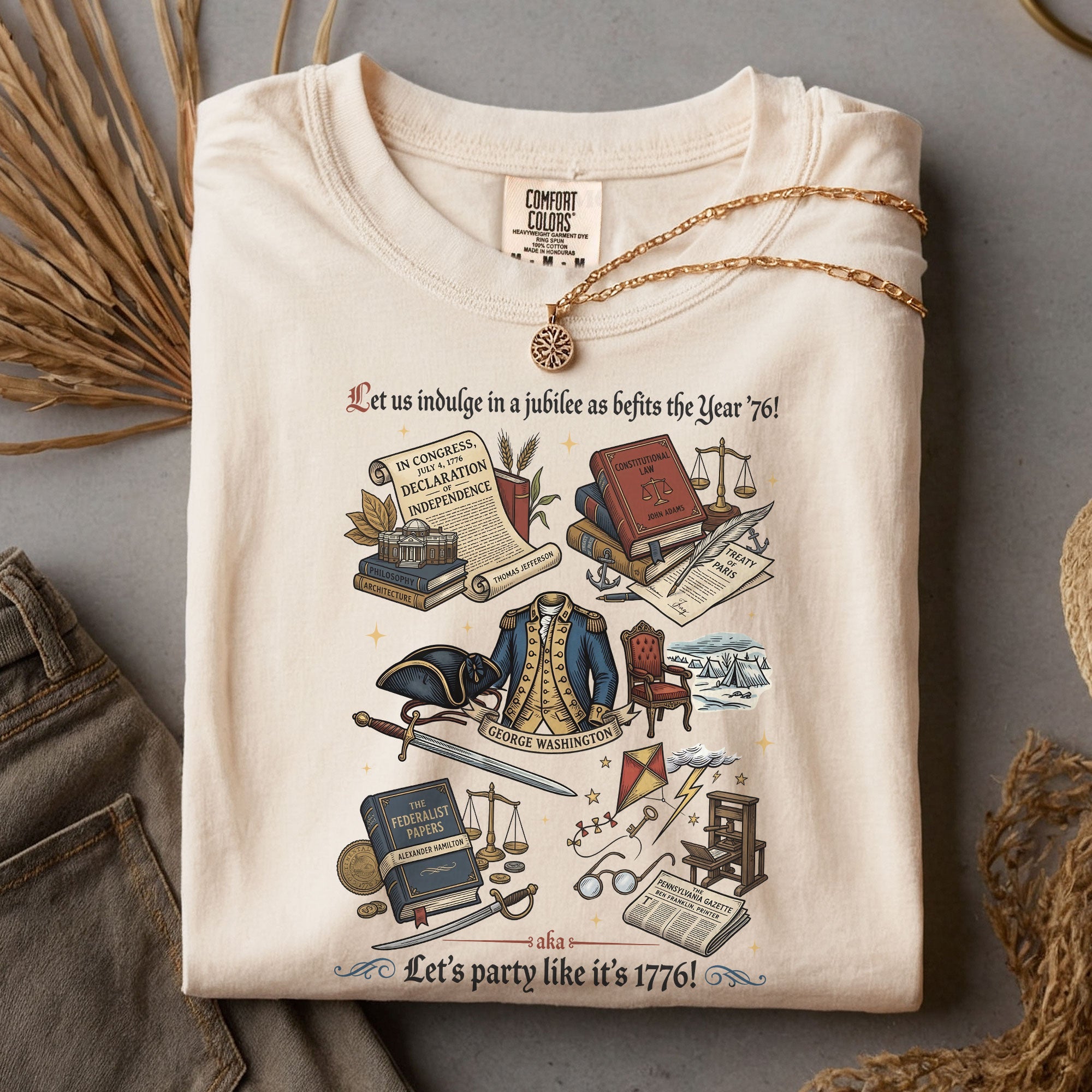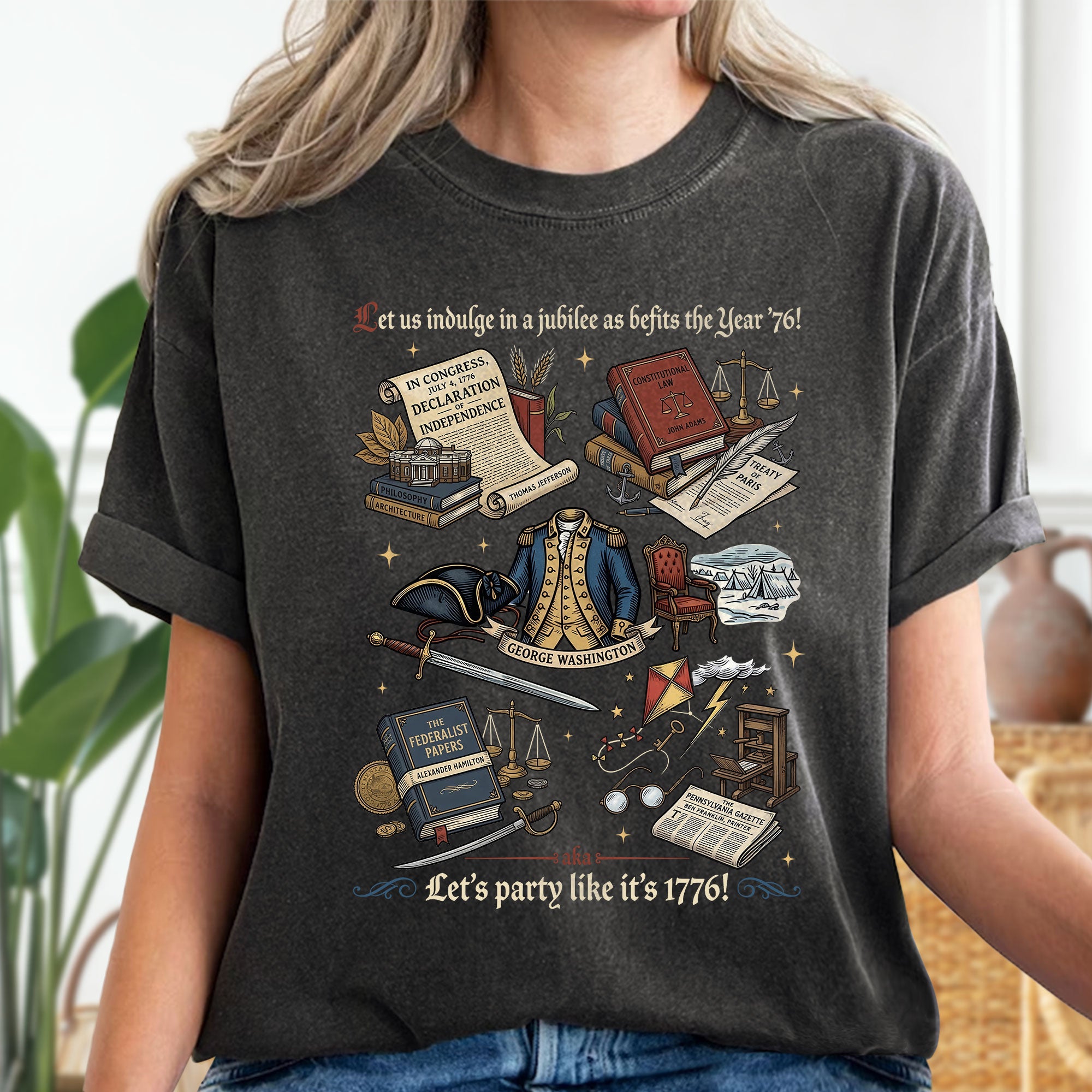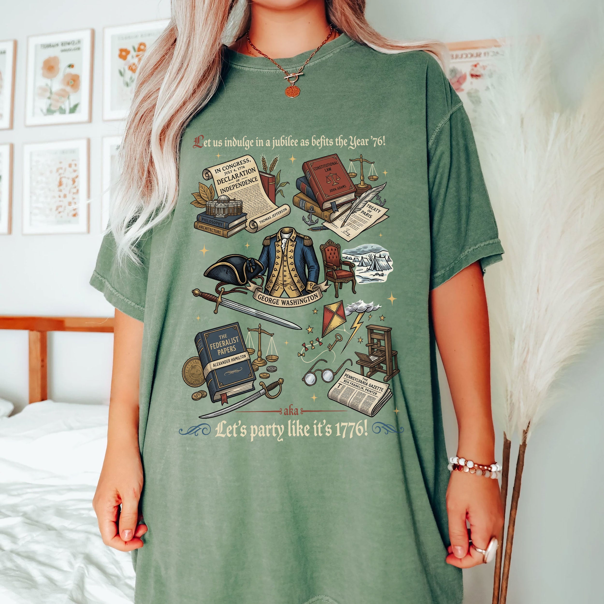 Celebrate American independence with this vintage 1776 patriotic T-shirt, featuring classic history icons and a timeless distressed design. Crafted from soft, breathable cotton for all-day comfort, it’s perfect for Independence Day celebrations, 4th of July barbecues, history buffs, and anyone proud of USA heritage. The retro graphic showcases key moments from 1776, evoking patriotism and national pride. Available in multiple sizes for men, women, and unisex fit. Machine washable and durable for everyday wear or special events like Memorial Day or Veterans Day.
