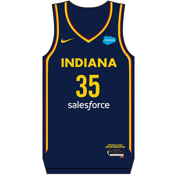 The Vivians 35 Indiana Fever Explorer Swingman Jersey in navy offers lightweight, breathable athletic wear perfect for fans, training, or casual outfits. Crafted from 100% polyester, this unisex adult jersey ensures comfort and durability with a classic fit that pairs easily with any style. Stay cool during workouts, games, or everyday wear thanks to its breathable fabric that wicks away moisture. Available in sizes S, M, L, XL, 2XL, 3XL. New condition. Ideal for basketball enthusiasts seeking a versatile sports jersey with Indiana Fever-inspired design.