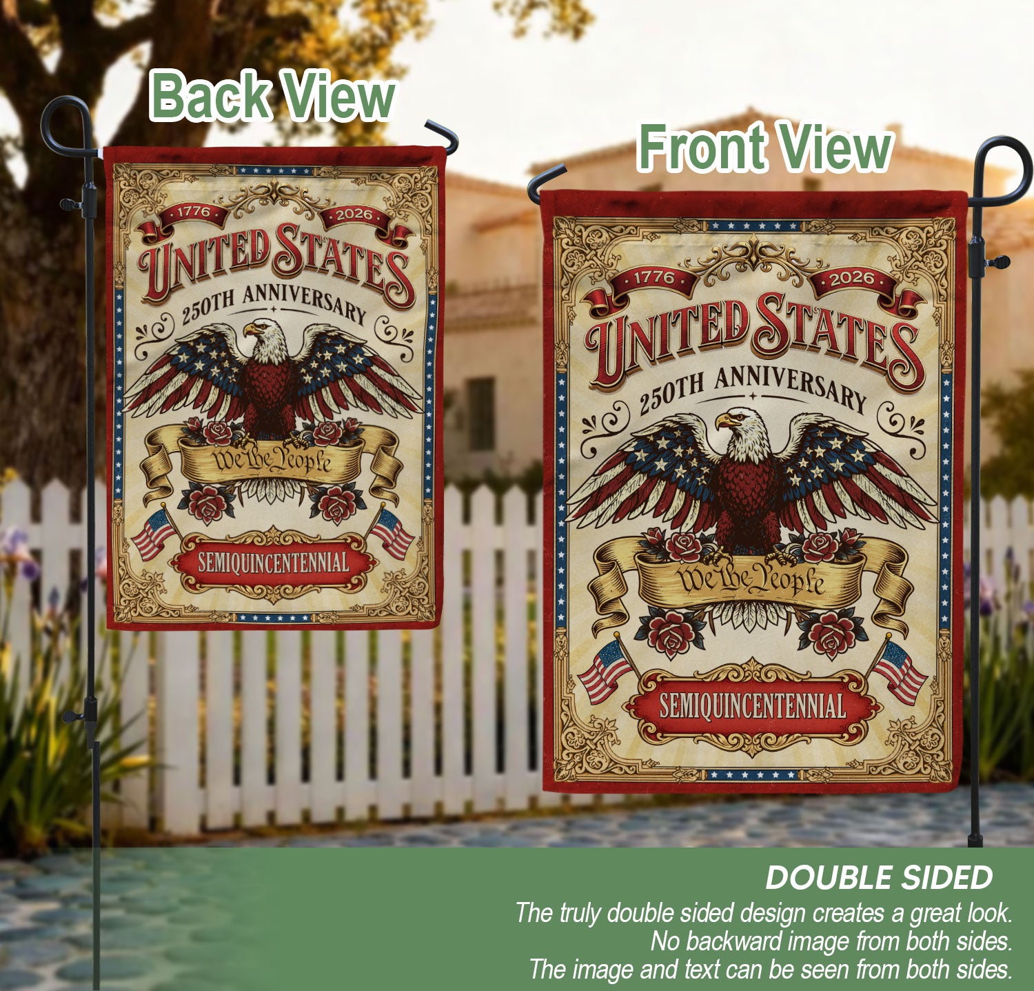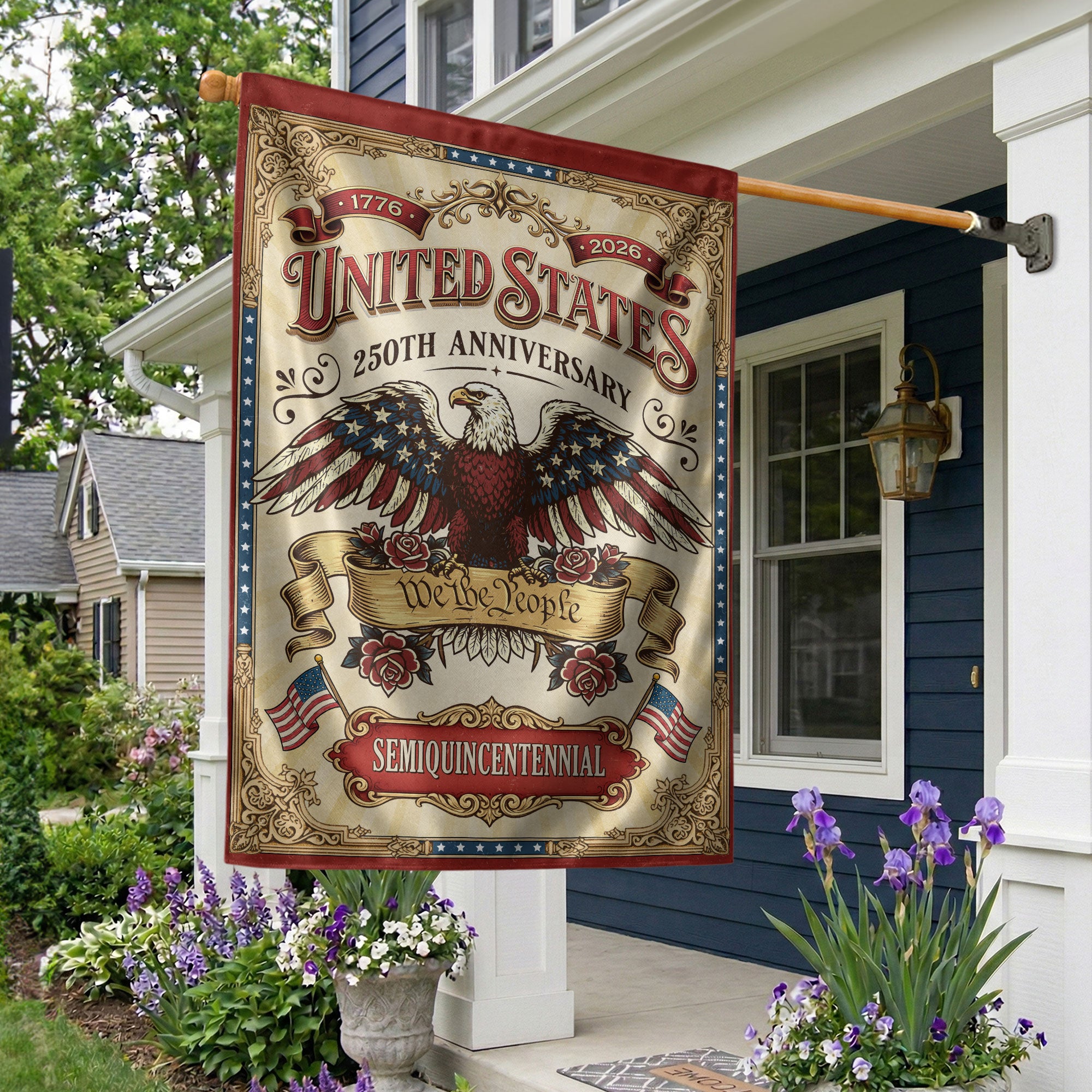 Celebrate 250 years of American independence with this We The People 250 Years United States 1776-2026 Garden Flag. Featuring a striking bald eagle design and the iconic ‘We The People’ phrase, this double-sided USA banner captures the pride, strength, and patriotic spirit of the nation. Perfect for gardens, porches, or patios, it serves as a bold tribute to the 250th anniversary. Crafted with high-quality, weather-resistant fabric for vibrant colors and durability in outdoor conditions. Easy to hang with a sleeve for standard garden flag poles. Ideal for history enthusiasts, patriots, and anyone honoring America’s enduring legacy from 1776 to 2026.