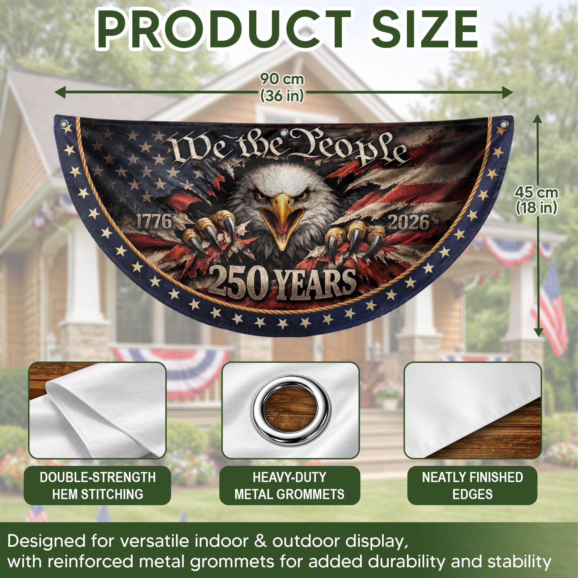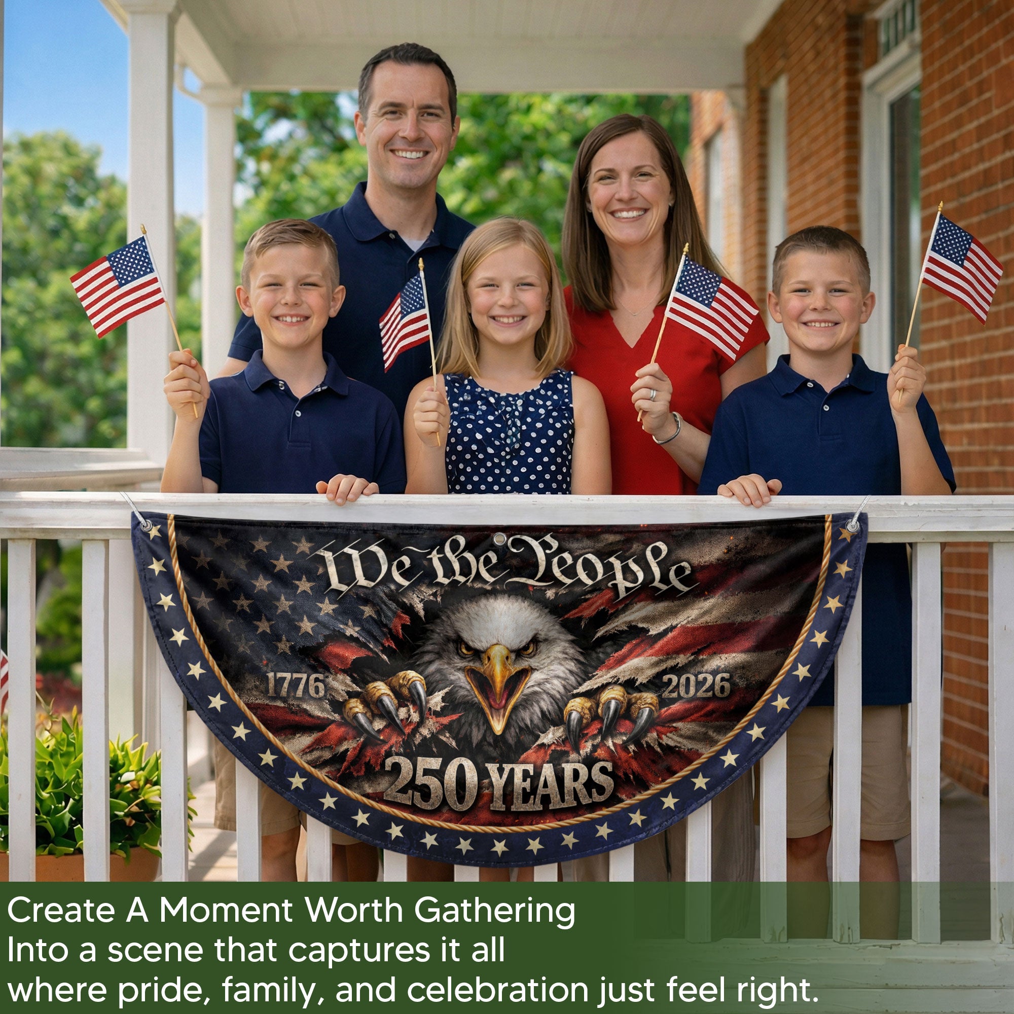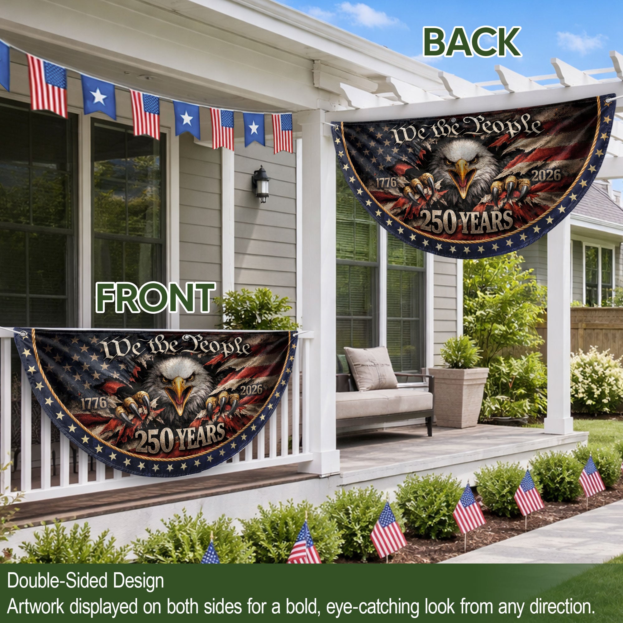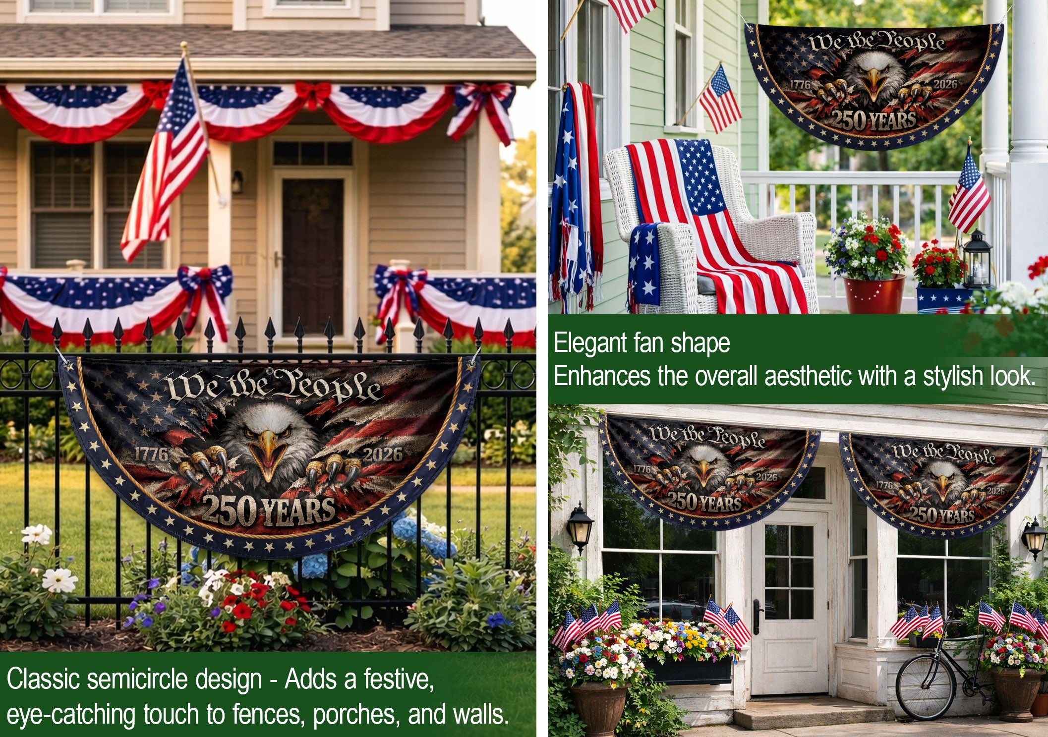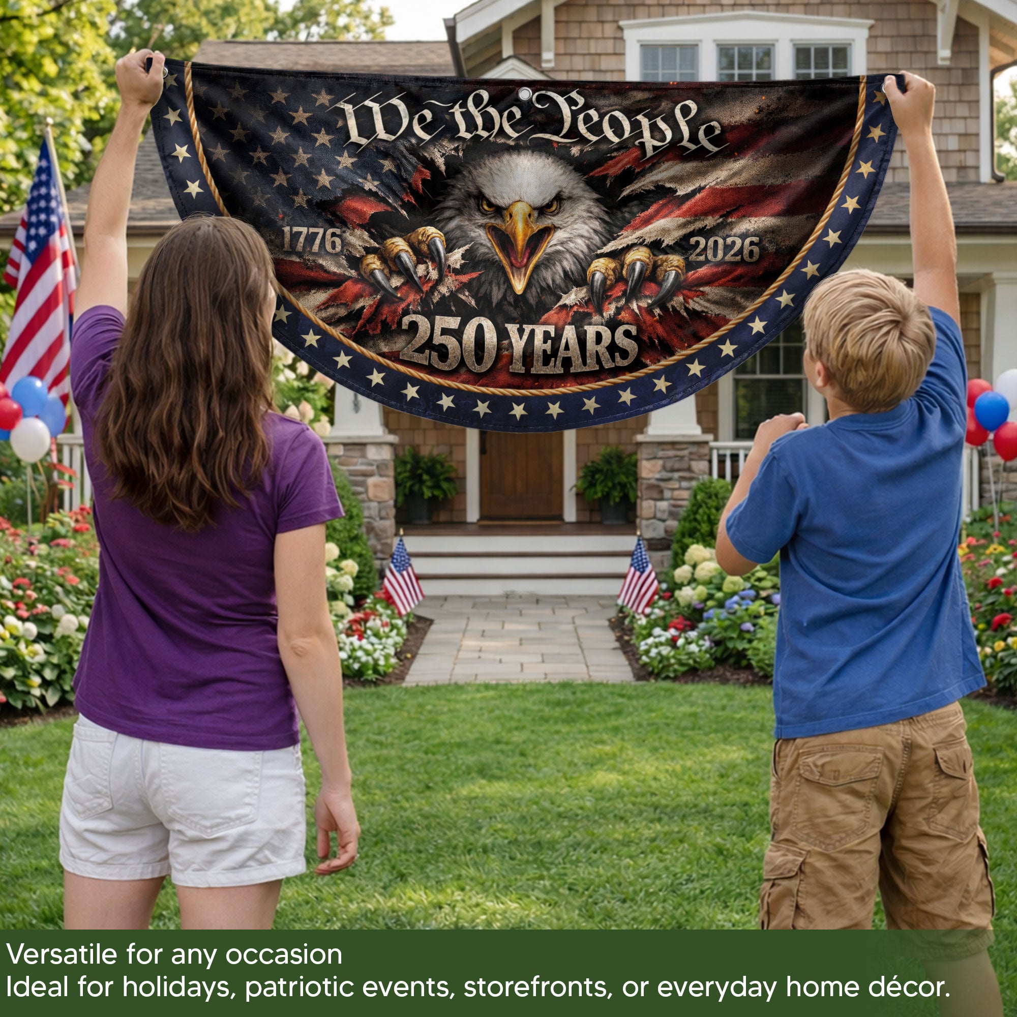 Celebrate America’s 250-year milestone from 1776 to 2026 with the We The People Eagle Fence Flag. This double-sided patriotic banner features a striking eagle design and the iconic We The People slogan, perfect for displaying on fences, patios, gardens, or porches. Crafted from durable, weather-resistant polyester fabric, it withstands wind, rain, and sun exposure to maintain vibrant colors year-round. Easy to install with reinforced grommets and clips, this 3×5-foot flag adds bold American heritage symbolism to homes, events, or celebrations. Ideal for Independence Day, Memorial Day, Fourth of July, or everyday patriotism. Proudly made in the USA for lasting quality.