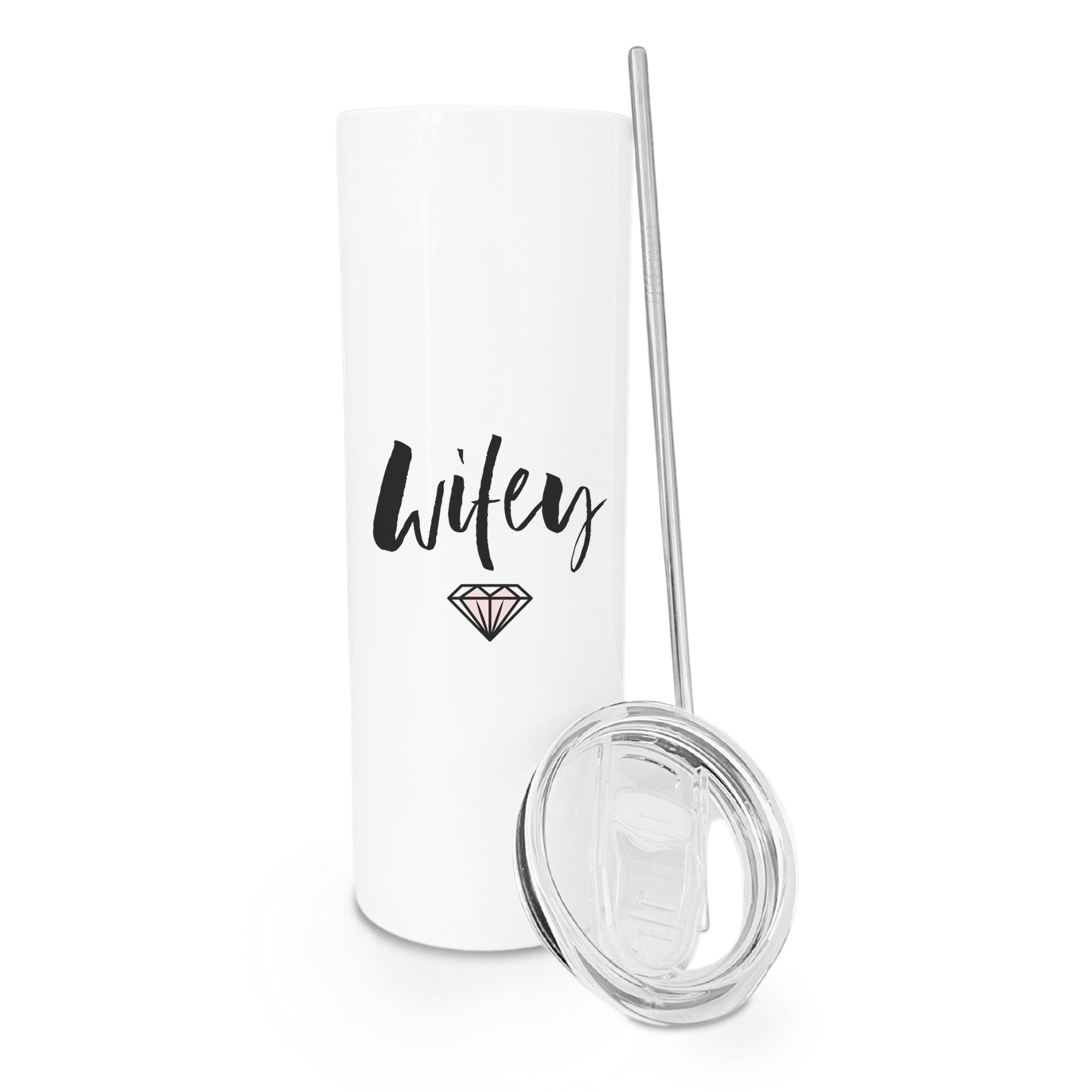 Measurements: 8.25″ Tall x 3″ DiameterFirst you’re a bride and then you’re a wife, celebrate the diamond and the eternal love with this understated Wifey design. Whether it’s a gift or for yourself, our super unique tumblers are the perfect addition to a drinkware collection. As a gift for the Bride to Be, this wedding tumbler can also be paired with our Bride tumbler or even our “Miss to Mrs” design!Material: High quality, food grade stainless steel. Our durable, 20-ounce tumblers contain double-wall vaccum insulation to keep contents hot and cold throughout the day. Simply fill with your favorite beverage – water, coffee, tea, wine, juice, and / or any other beverage of your choice!These cute wedding sayings are printed with high quality inks to maintain the vibrant colors and glossy finish even after multiple washes! The print is directly embedded onto the tumbler – the color will NOT fade or peel off.Includes: BPA free slide-close lid and metal straw. Its protective, sliding lid and silicone seal protects your beverages from dust and avoids spills. Hand wash recommended.These travel tumblers make the perfect bottle for a day at the beach or by the pool, camping, hiking vacations and all other adventures! They also serve as the perfect Christmas gift, Valentine’s Day gift, Mother’s Day gift, Father’s Day Gift, birthday present, and bridesmaid proposal gift!