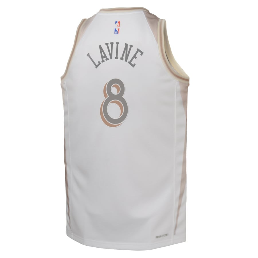 Show your Chicago Bulls fandom with this Zach LaVine #8 2024/25 Swingman Player Youth Jersey in City Edition white. Crafted from 100% lightweight polyester fabric, it offers superior breathability and comfort for young fans during games, practice, or casual wear. The classic fit ensures easy movement and pairing with other outfits. Designed for youth athletes and supporters, this jersey features authentic team-inspired styling without official affiliation. Ideal for basketball enthusiasts seeking durable, cool-wearing apparel. Available in youth sizes S to 3XL. New condition, multicolor accents on white base.