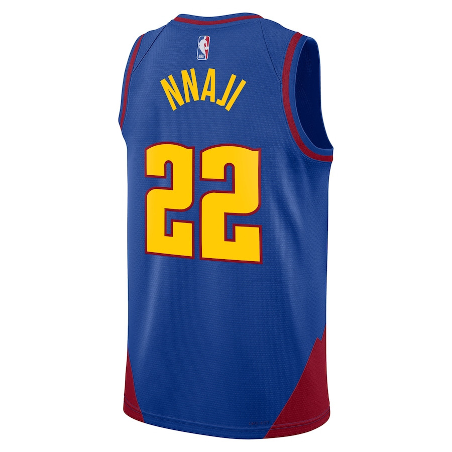 The Zeke Nnaji 22 Denver Nuggets Unisex Swingman Jersey in Statement Edition Royal is crafted for comfort, durability, and versatile wear. Made from 100% polyester, this lightweight and breathable fabric keeps you cool during workouts, training sessions, or casual outings. The classic fit and clean design make it perfect for fan-inspired outfits or everyday style. Suitable for adults in sizes S, M, L, XL, 2XL, 3XL. This new unisex jersey offers a sporty look with Nuggets team graphics, ideal for basketball enthusiasts seeking authentic-style athletic wear without official affiliation.